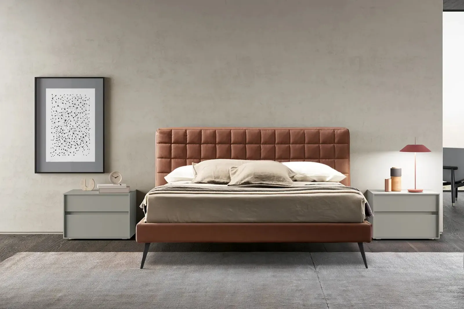 Vuoi rinnovare la camera da letto? Eccoti il letto in ecopelle Rubik Ecopelle di Adok per spazi moderni.