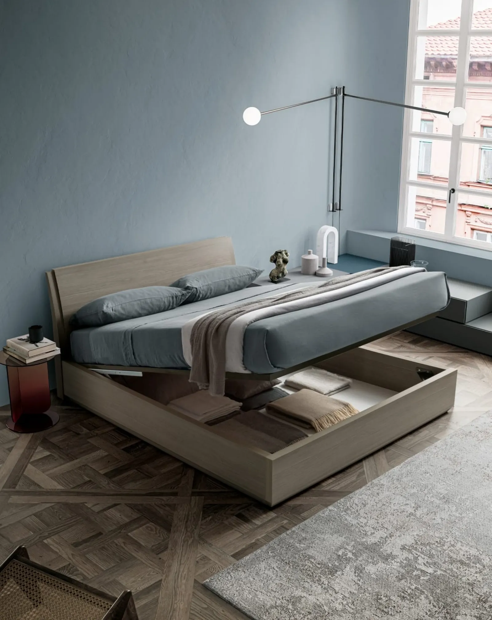 Contattaci e ottieni informazioni sulla nostra collezione di Letti matrimoniali con contenitore: valorizza la tua camera da letto con le nostre soluzioni. Il Letto Tod con box contenitore di SantaLucia è uno tra i prodotti più inediti del brand, sinonimo di durata negli anni, qualità delle finiture e uno stile unico. Per completare ottimamente l'arredo della tua zona del riposo è di primaria importanza valutare gli abbinamenti del letto con armadi e comò, elementi accessori e quant'altro: se desideri arredi moderni, il modello in foto fa al caso tuo.