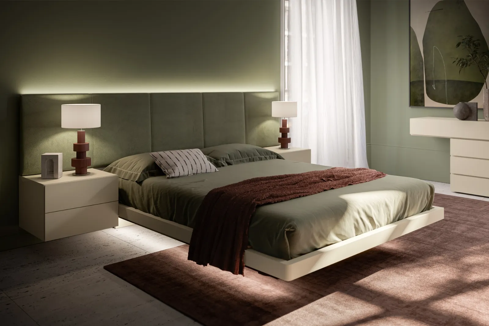 Il Letto Solano Imbottito di SantaLucia crea uno spazio accogliente e confortevole in ogni camera da letto, garantendoti il riposo migliore e un design unico. Se vuoi una soluzione in tessuto, il modello presente in foto è contraddistinto da materiali di prima scelta e forme decise, che invitano a goderti un sonno completo e rigenerante. Durante l'acquisto della giusta tipologia di letto, valuta con cura le sue dimensioni, le finiture, la forma e il suo stile rispetto al resto dell'arredo. Scegli tonalità e finiture e realizza il tuo concept d’arredo nella camera da letto, progettandola proprio come l'avevi sognata.