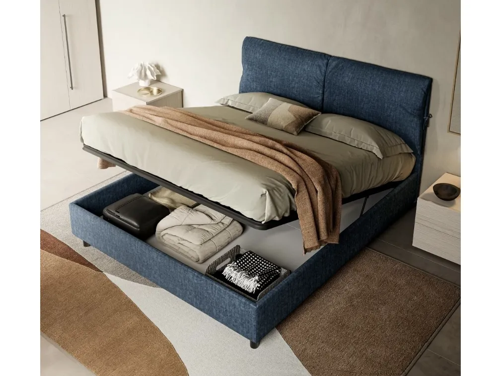Il letto Taku in tessuto, tra i modelli con contenitore matrimoniali moderni di SantaLucia, è pensato per assicurarti il relax totale.