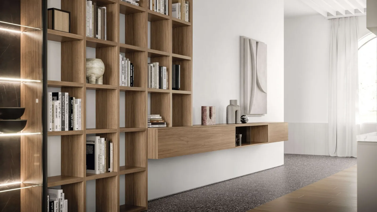 Materiali di pregio e forme decise: scopri la libreria Homy Collection 08 di SantaLucia tra le più originali Librerie moderne a muro.