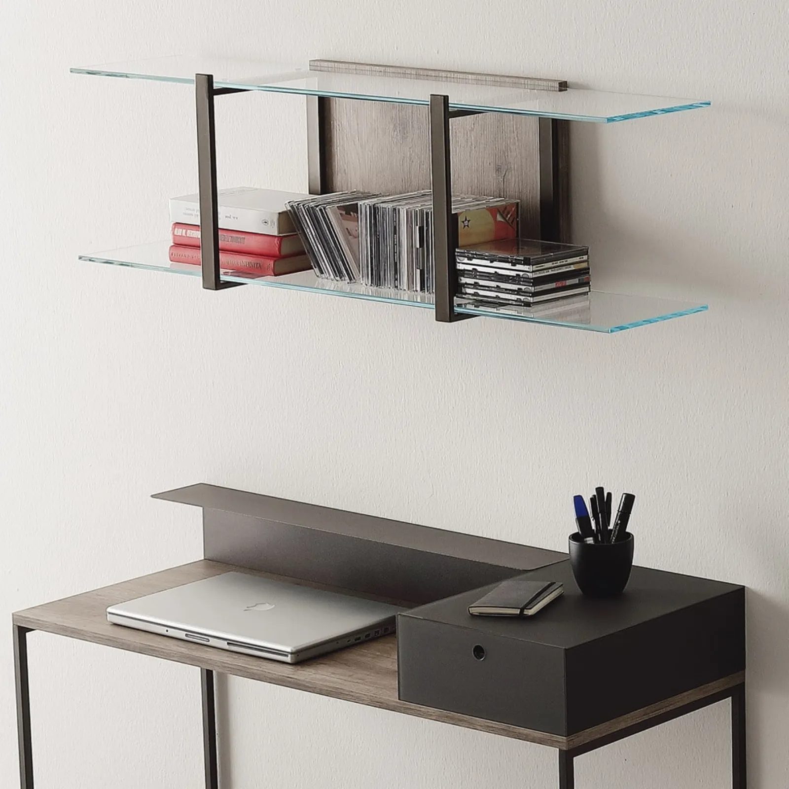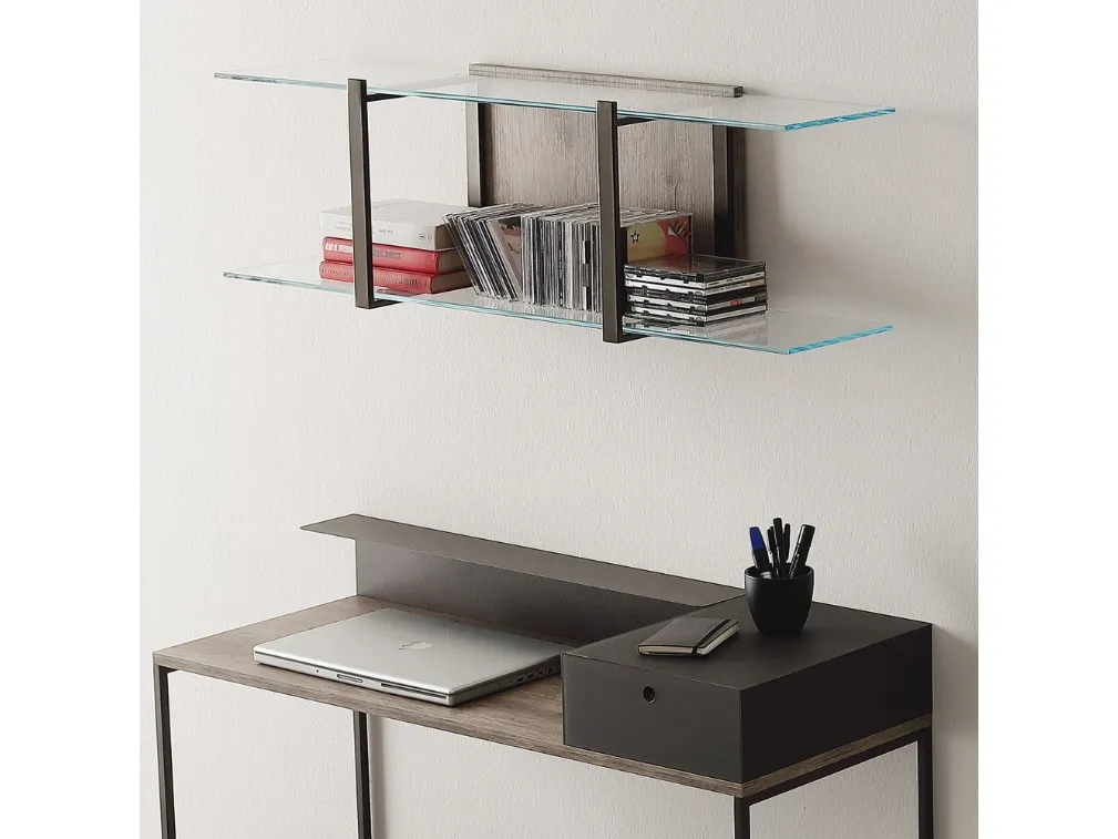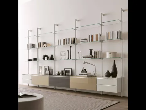 Texture di pregio e linee decise: scopri la libreria K125 ICON sospesa v3 di Ponti Terenghi tra le più belle Librerie moderne sospese.