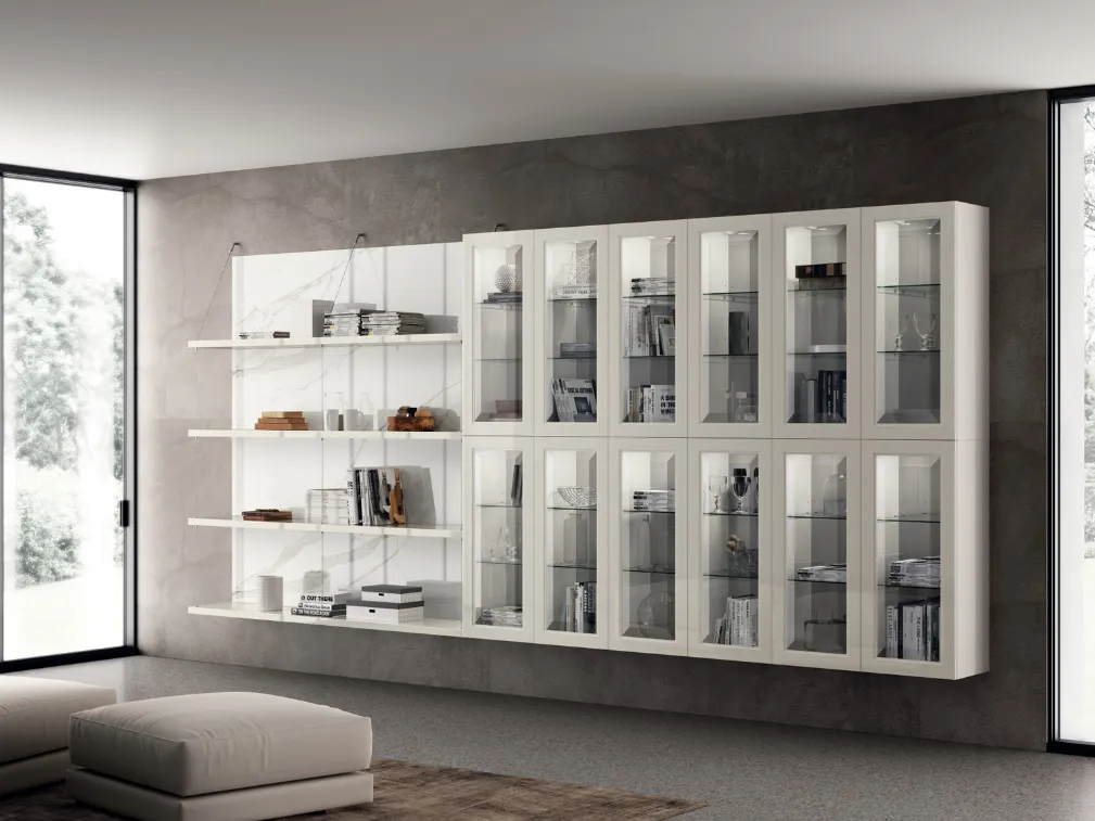 Clicca e scopri le Librerie sospese moderne! Il modello Living Exclusiva Bianco Prestige Scavolini saprà ultimare un soggiorno pratico e dinamico.