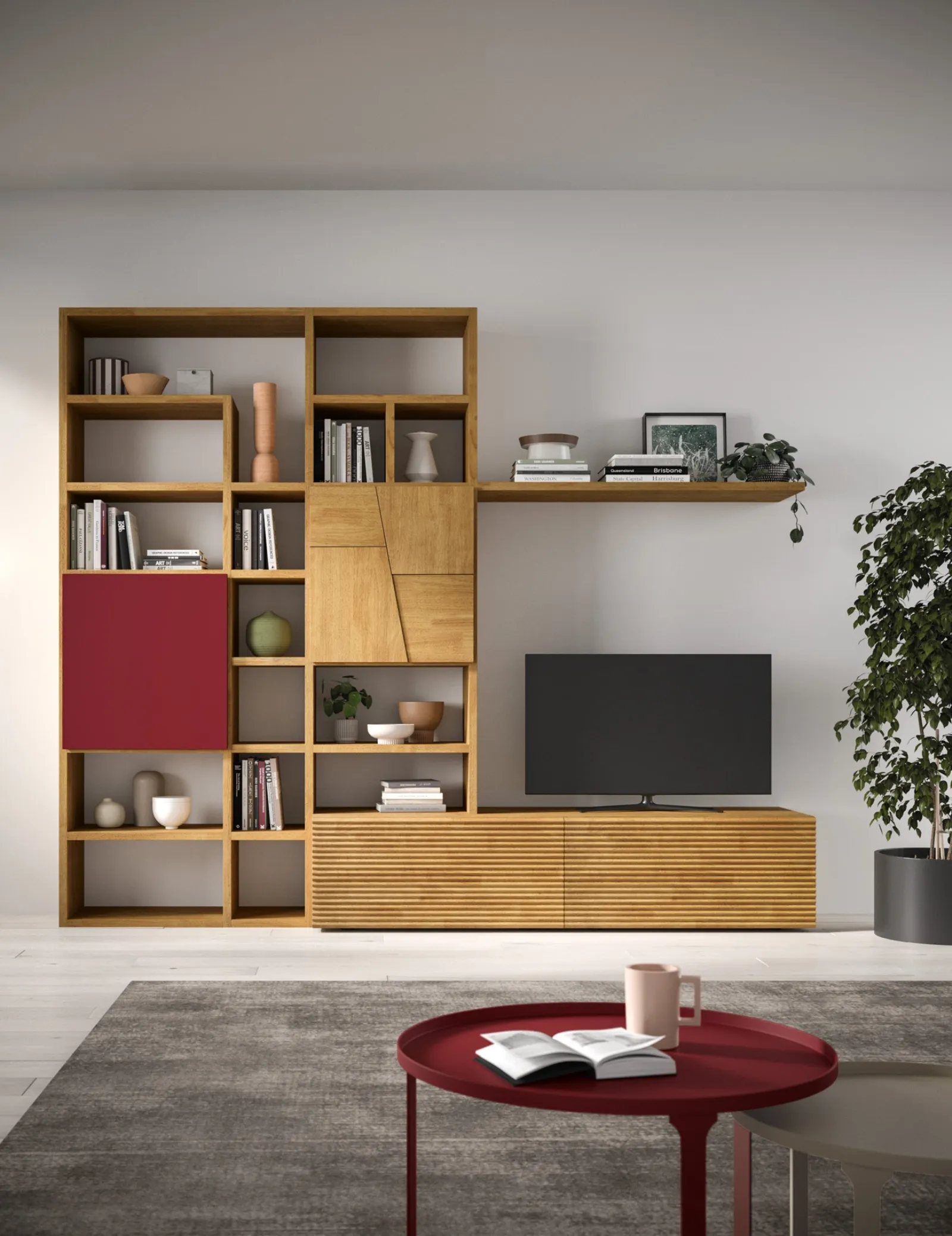 Librerie a muro veramente pratiche per stanze moderne: ottieni informazioni sul modello Mixer 01B della firma FGF Mobili!