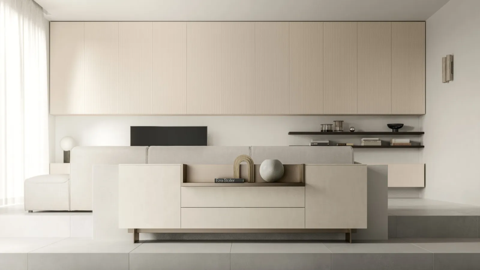 Arreda un living dinamico e operativo con questa madia Homy Foil 01 di SantaLucia: scopri le più esclusive Madie in melaminico.