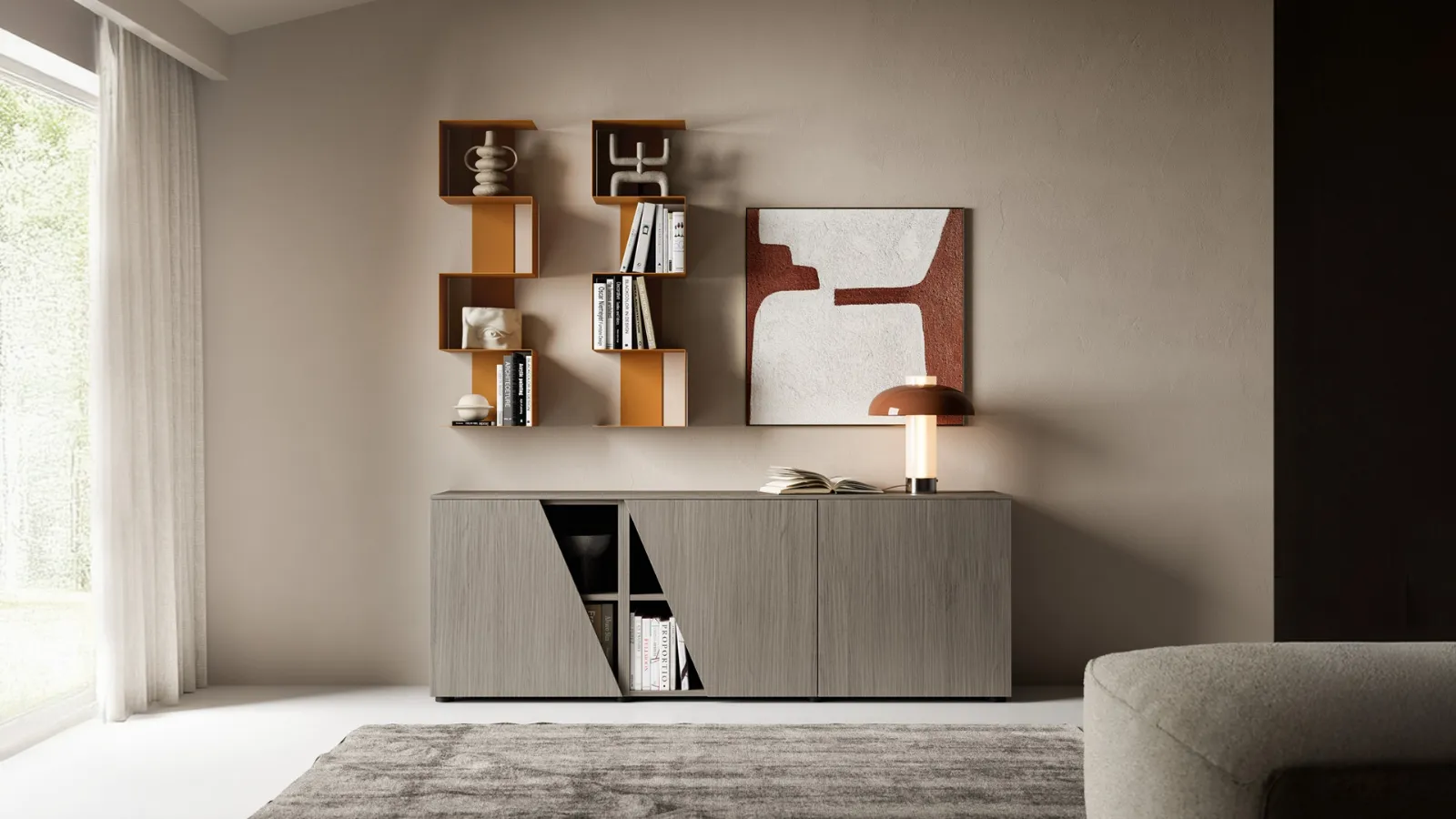 Arreda un living operativo e pratico con questa madia Pratico L1836 H2000 di SantaLucia: scopri le più esclusive Madie in melaminico.