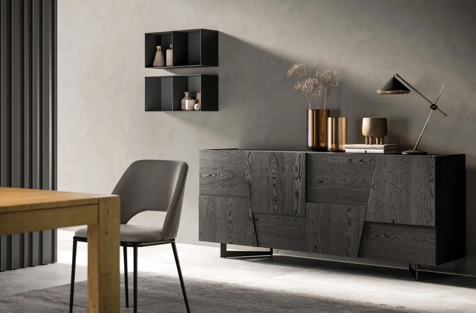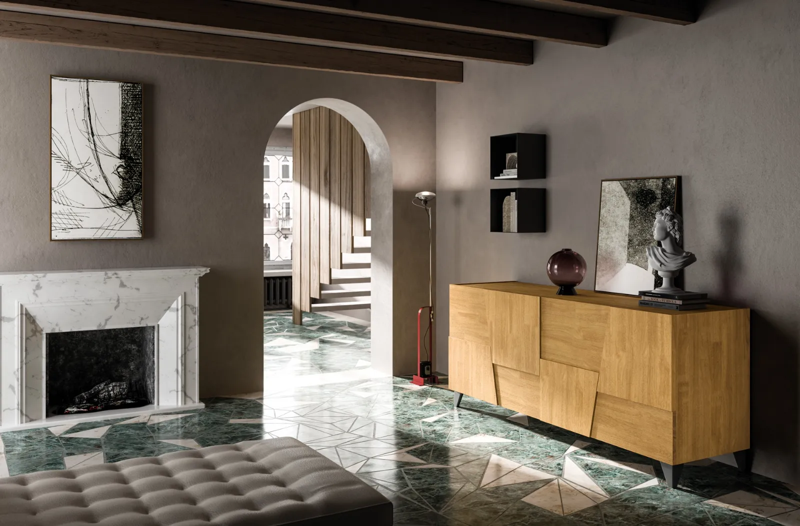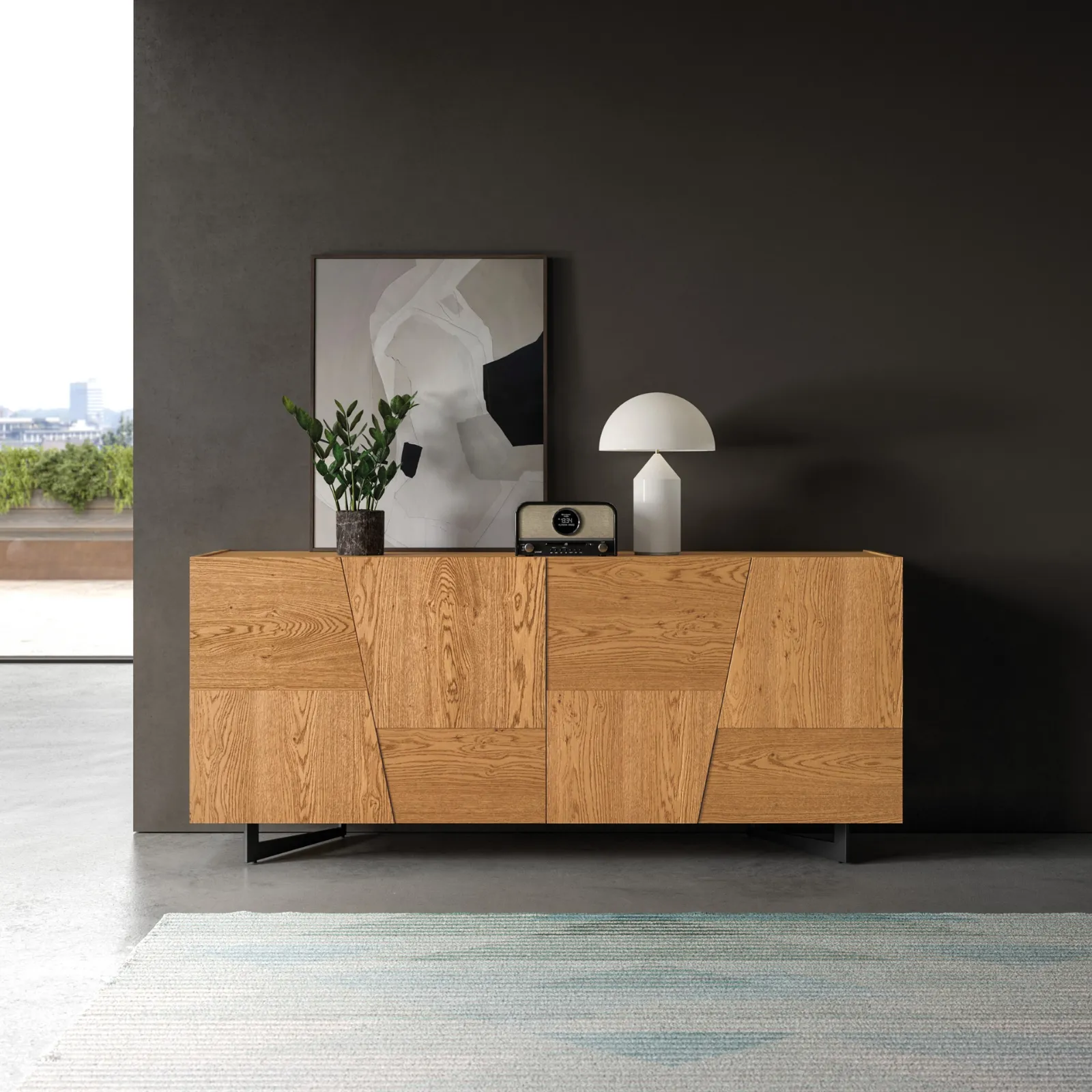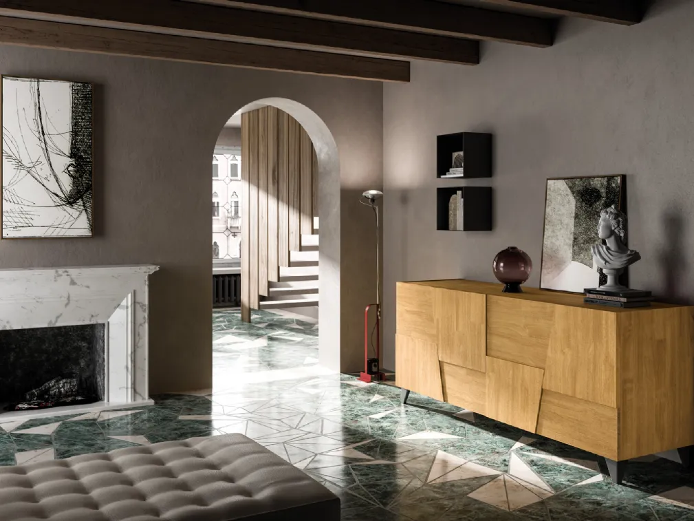 Arreda un living pratico e dinamico con questa madia Trapeze quattro ante di FGF Mobili: scopri le più esclusive Madie in legno.