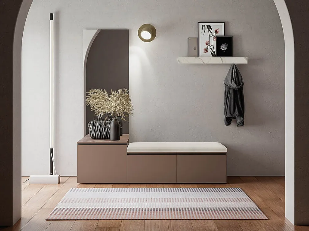 Una ricca gamma di mobili per ingressi moderni: il modello Gola Up composizione 5 Birex in laccato opaco ti attende per completare l'arredo.