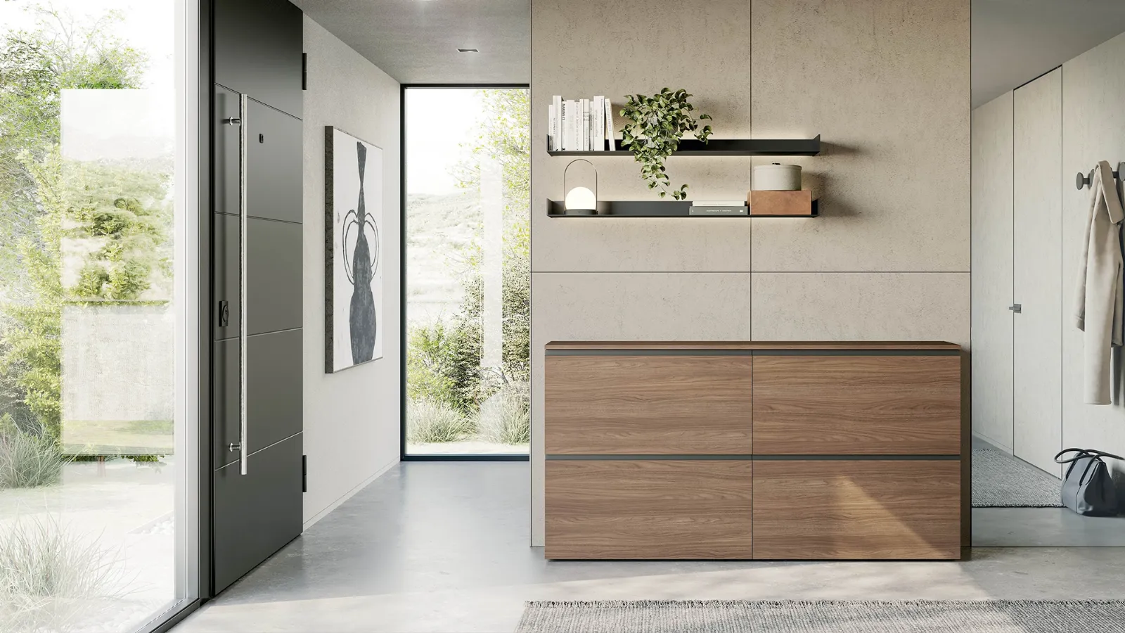 Vuoi ammobiliare un ingresso operativo e pratico? Ti presentiamo il mobile Minima effetto legno di Birex in melaminico, ideale per spazi moderni.