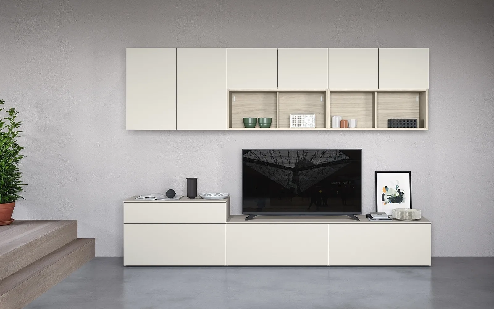 Attraverso un gioco pratico e operativo di incastri, sovrapposizioni, accessori a giorno o vani chiusi, le Pareti Attrezzate moderne arredano il living usufruendo al meglio di ogni spazio. Negli ultimi anni le Pareti Attrezzate hanno conquistato un posto importante in fatto di Arredamento Casa: sono arredi plurifunzionali e salvaspazio sempre realizzabili su misura per te. Per informazioni e preventivi sulla Parete Attrezzata 04C di Cinquanta3 in foto contattaci! Il modello visibile in foto è realizzato in melaminico ma grazie ad un'ampia gamma di texture, tonalità e conformazioni potrà adattarsi a spazi di ogni genere. Questa parete attrezzata è una delle più originali soluzioni del marchio e ti permetterà di allestire il living secondo le più particolari problematiche abitative.