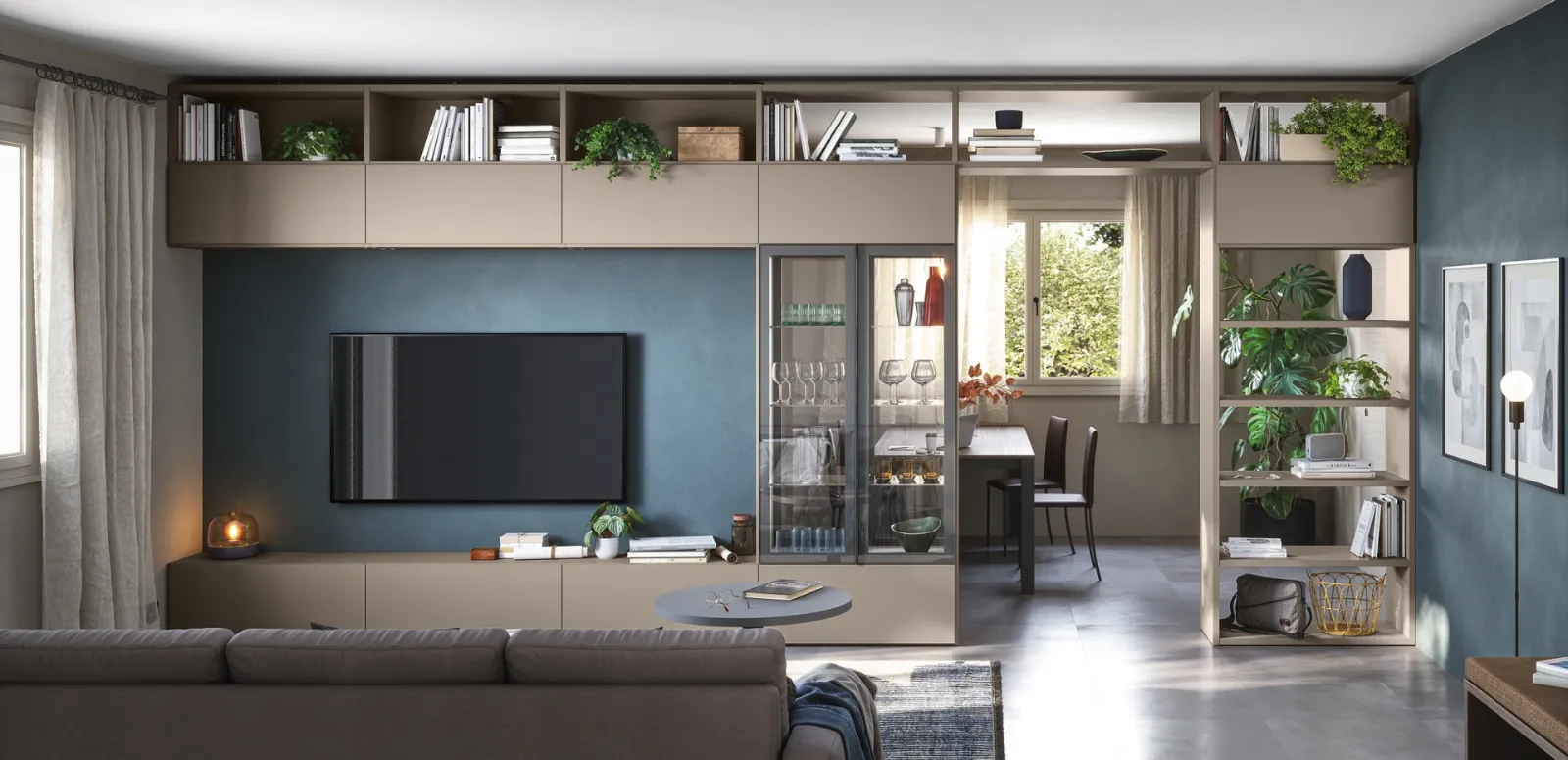 Pareti attrezzate e mobili giorno Cinquanta3: clicca e scopri il modello Parete Attrezzata 04D e potrai impreziosire stanze moderne di ogni genere.