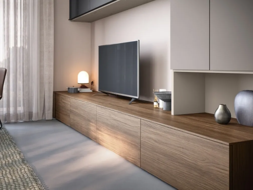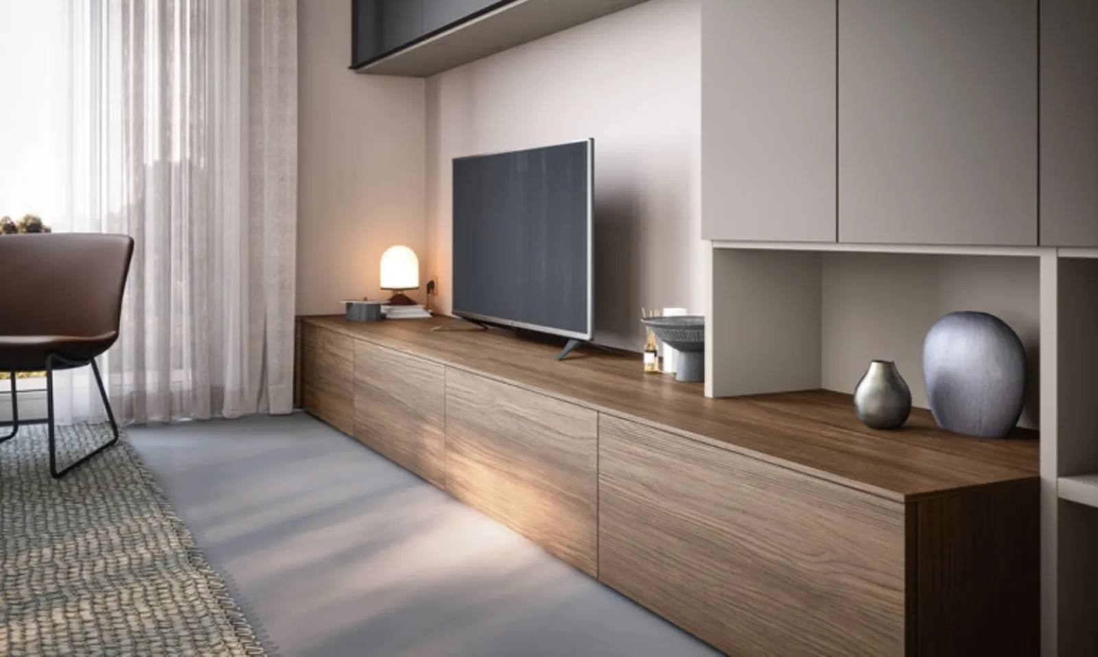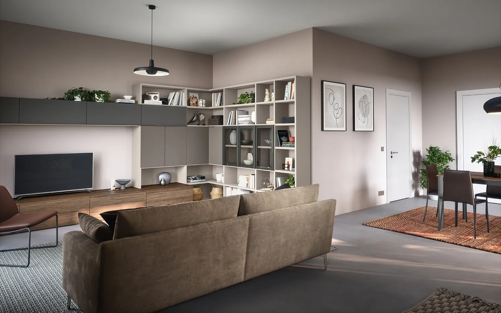 Se vuoi ultimare un living pratico e operativo dalle linee moderne, ti offriamo la parete attrezzata Parete Attrezzata 05D Cinquanta3.