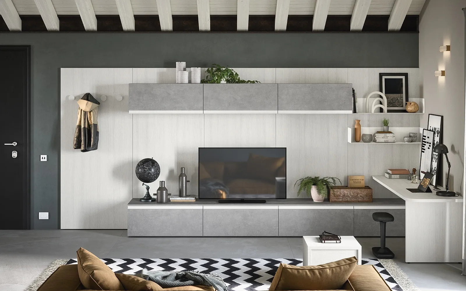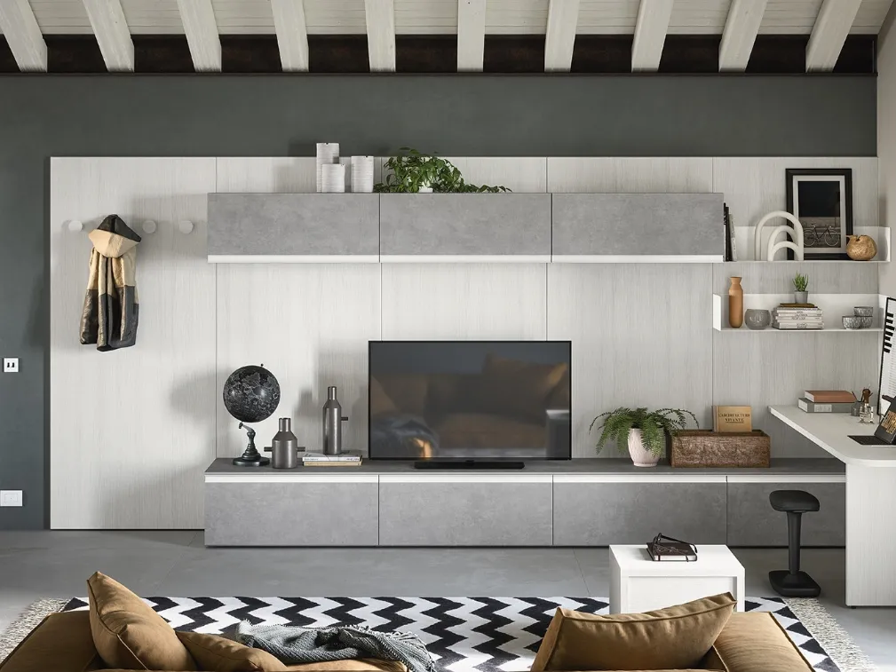 Pareti attrezzate e mobili giorno Cinquanta3: clicca e scopri il modello Parete Attrezzata 06D e potrai valorizzare stanze moderne di ogni genere.