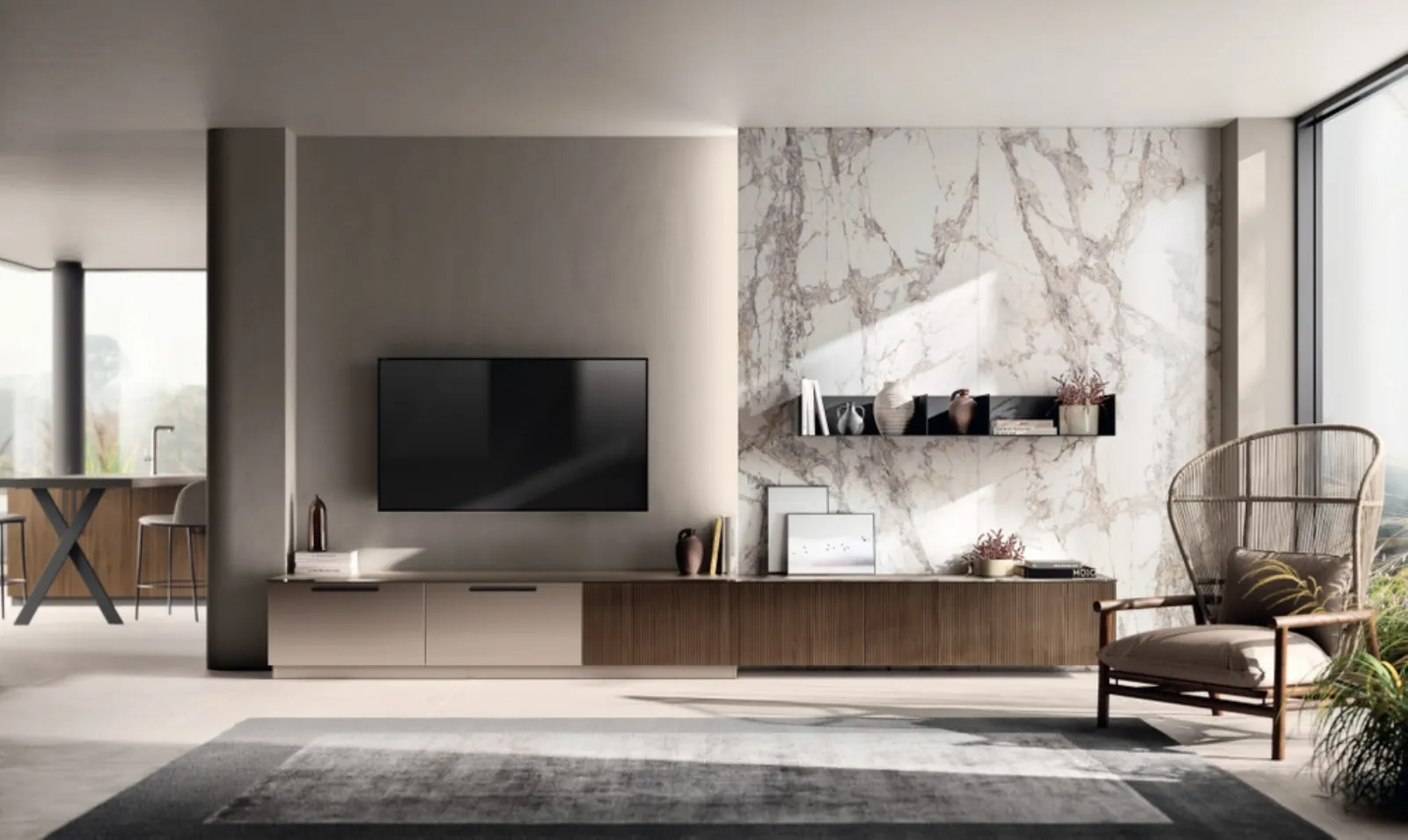 Un po’ librerie, un po’ contenitori ed espositori: le Pareti Attrezzate sono ideali per attrezzare un luogo dinamico e operativo. Questa soluzione costituisce tutta la qualità che il marchio garantisce grazie a pluriennale competenza e grande dedizione nel campo dell'arredo e del design. Anche in un living di dimensioni contenute, questo tipo di arredo riesce a ottimizzare gli spazi ottimizzando ogni angolo e garantendo componibilità personalizzabile tipica delle soluzioni moderne. Se cerchi mobili salvaspazio e realizzabili su misura, contattaci e scopri di più sull'Arredamento Casa dei migliori produttori. La Parete Attrezzata Living Musa in Rovere Pecan e laccato opaco di Scavolini nell'immagine, con finitura in legno, risolve le più personali problematiche abitative di spazio e stile senza rinunciare alla ricerca estetica.