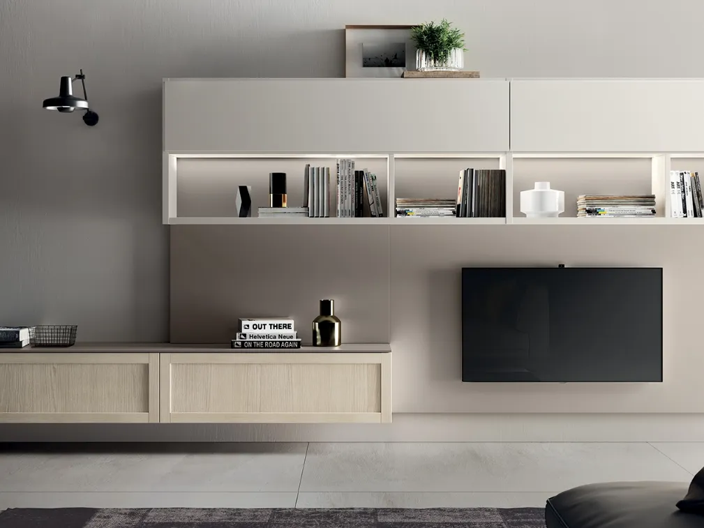 Pareti attrezzate e mobili giorno Scavolini: clicca e scopri il modello Living Carattere in Frassino Avorio e potrai valorizzare stanze moderne di ogni tipo.