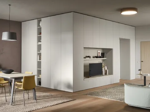 Poiché il living deve essere uno spazio pratico e bello a vedersi, sono molto utili alcuni arredi belli e pratici come le Pareti Attrezzate. Lasciati affascinare da una ricca gamma di arredi per la zona giorno e troverai la parete attrezzata che fa per te. Scavolini offre a catalogo inediti modelli di mobili soggiorno, diversi per stile e conformazioni, texture e accessori: scopri nel nostro punto vendita l'Arredamento Casa dei migliori produttori. La Parete Attrezzata sospesa Living Easy Urban in decorativo Eucalipto Taj di Scavolini in foto è una delle più esclusive soluzioni d’arredo sul mercato: l'alta componibilità e le diverse opportunità di progettazione la rendono funzionale ed esteticamente gradevole. I mobili soggiorno in melaminico dalle linee moderne come il modello in foto sono davvero versatili e capaci di allestire il living usufruendo al meglio di ogni angolo.