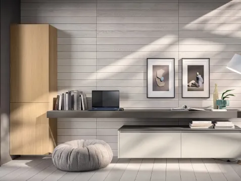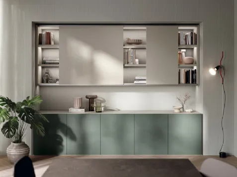 Clicca e scopri di più sulla parete attrezzata Living Essenza 01 del marchio Scavolini: è la soluzione dalle linee moderne ideale per te.