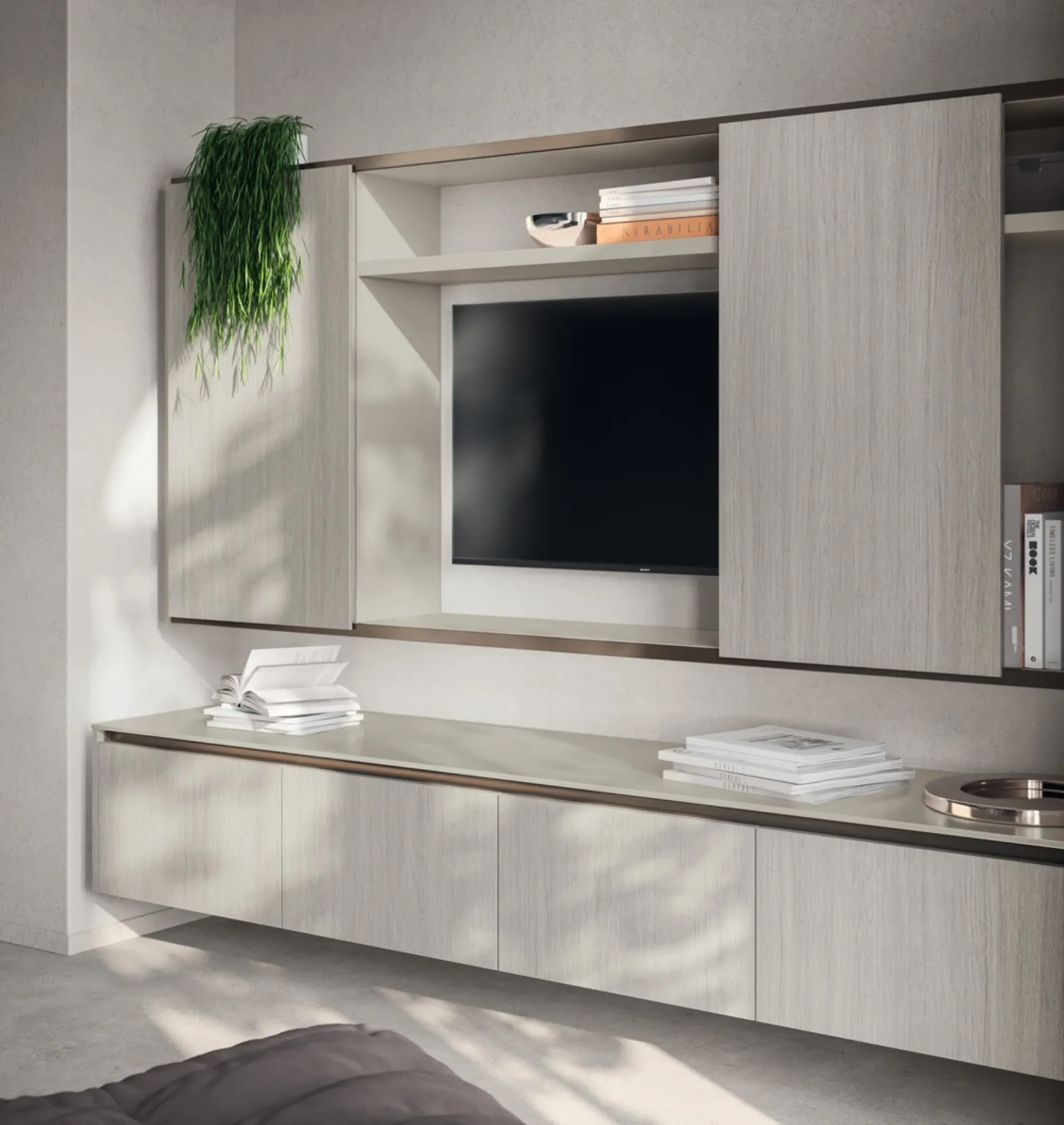 Vuoi progettare un soggiorno pratico e dinamico? Ecco a te la parete attrezzata Living Libra Oriental Light Scavolini dalle forme decise moderne.