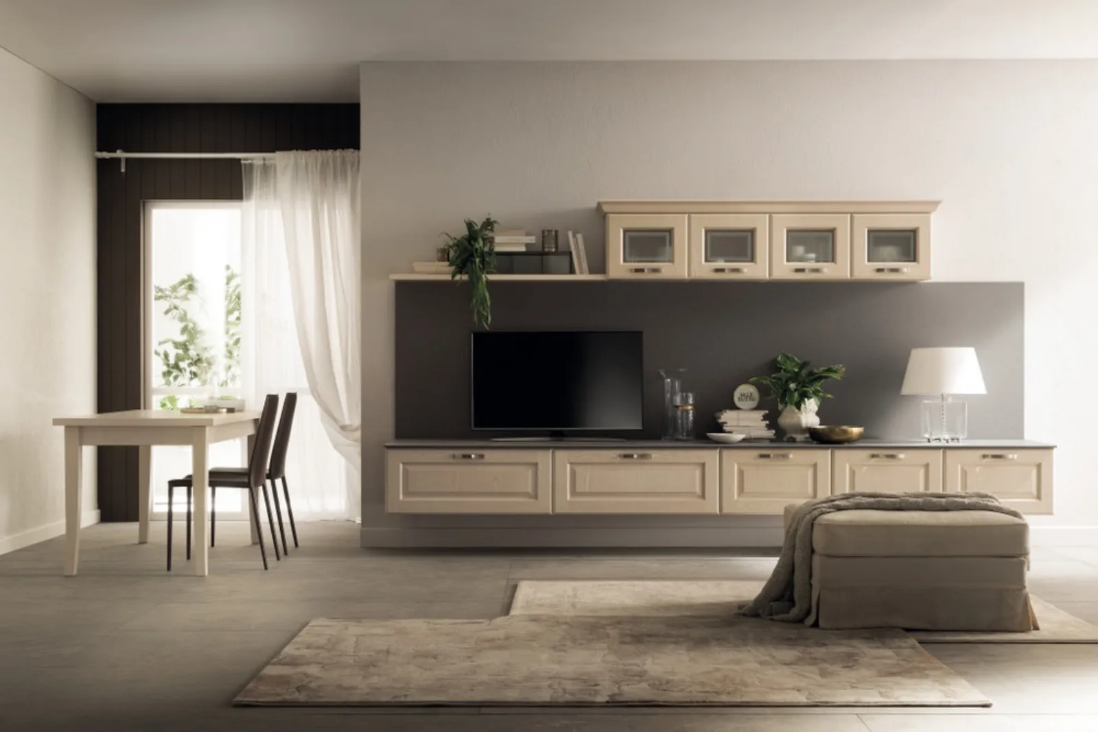 Clicca e ottieni informazioni sulla parete attrezzata Living Madeleine in Frassino Bianco Burro v2 dell'azienda Scavolini: è la soluzione dalle linee classiche ideale per te.