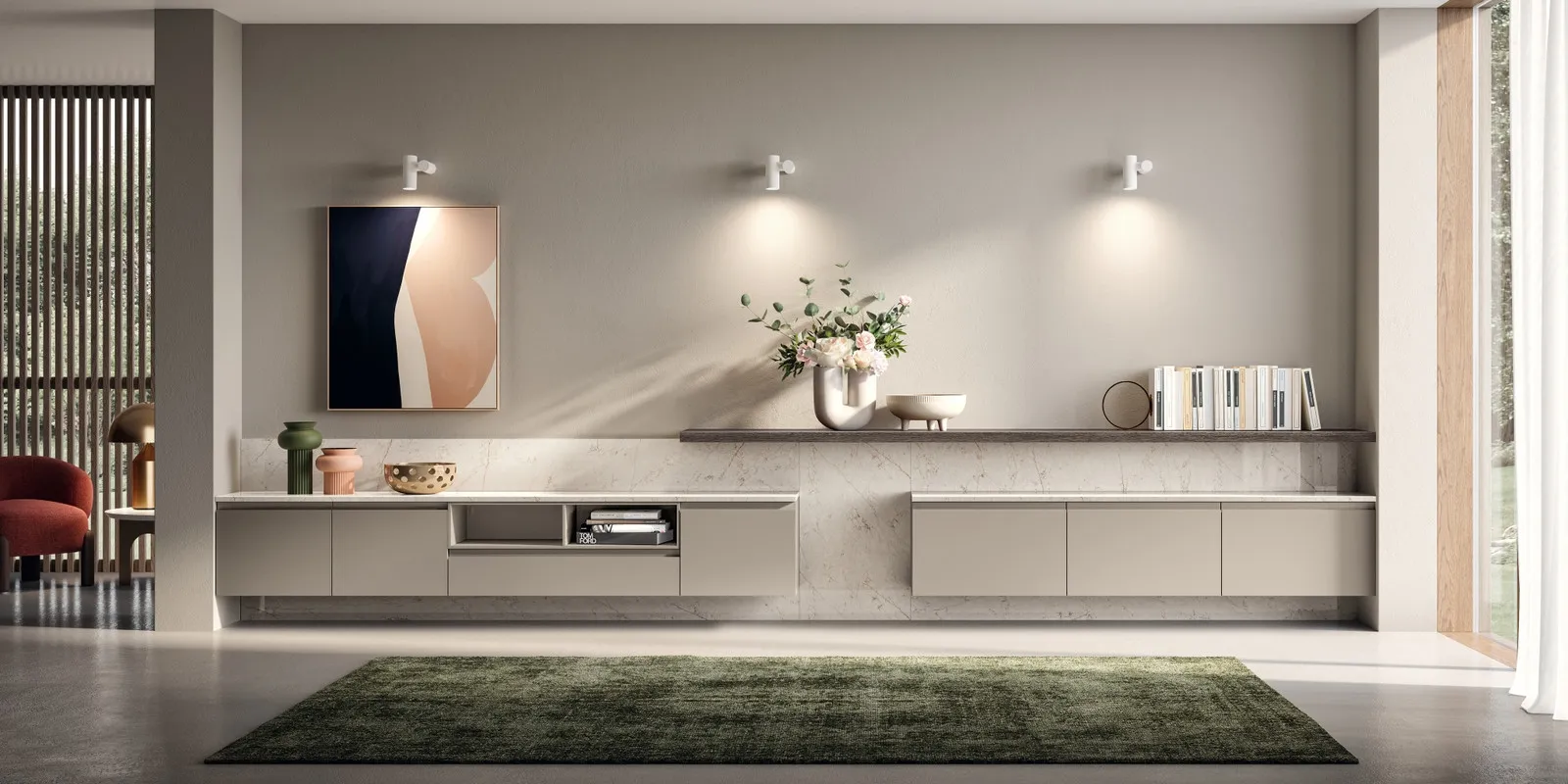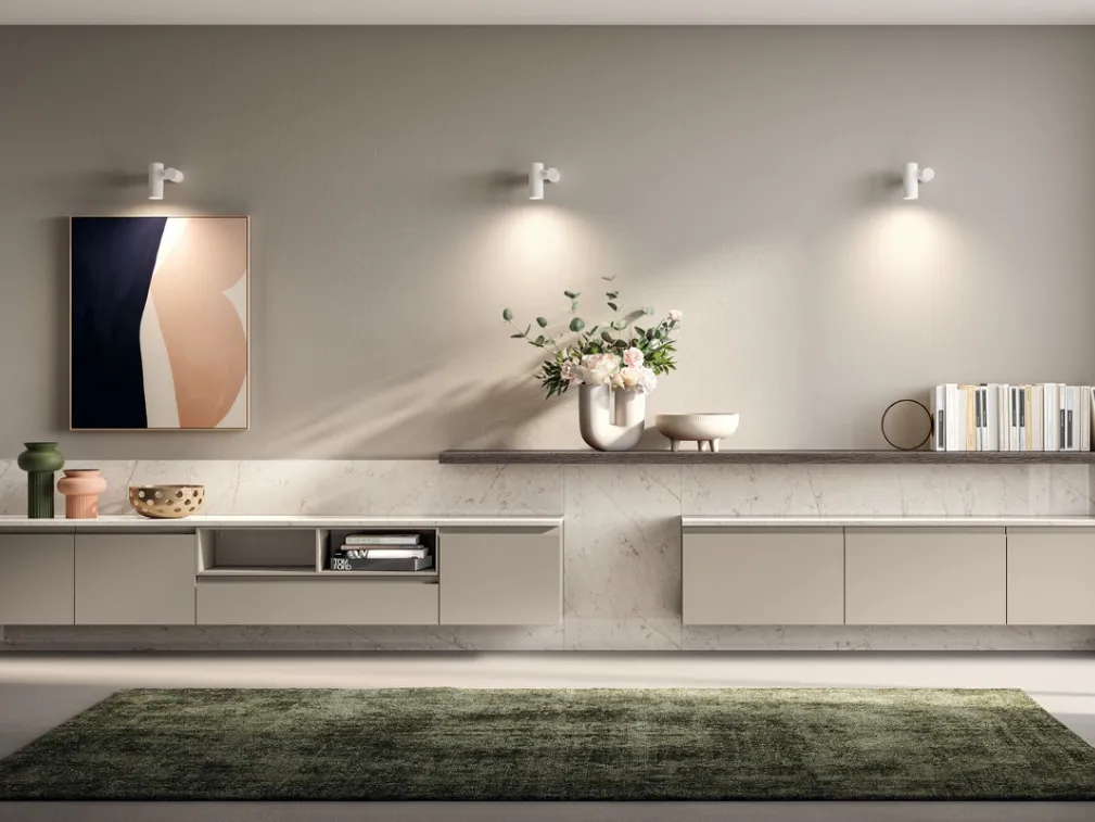 Se desideri completare un soggiorno pratico e operativo dalle linee moderne, ti presentiamo la parete attrezzata Living Motus Visone Scavolini.