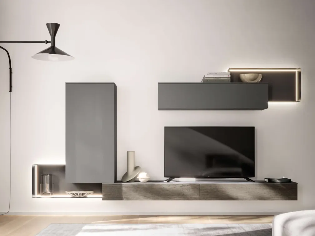 Se desideri completare un living dinamico e operativo dalle linee moderne, ti presentiamo la parete attrezzata Location 16 SantaLucia.