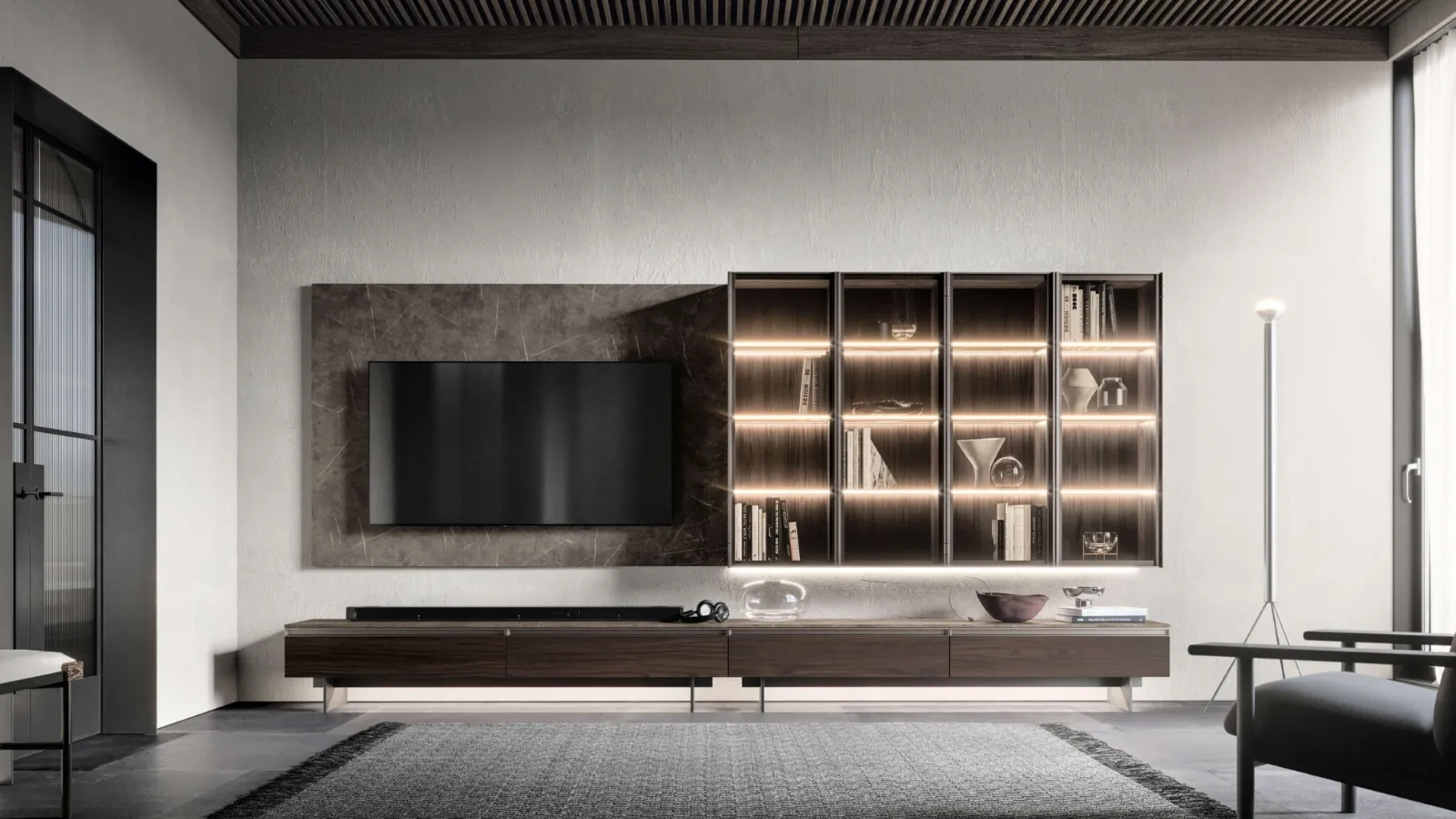 Pareti attrezzate e mobili soggiorno SantaLucia: clicca e scopri il modello Location 21 e potrai completare stanze moderne di ogni genere.