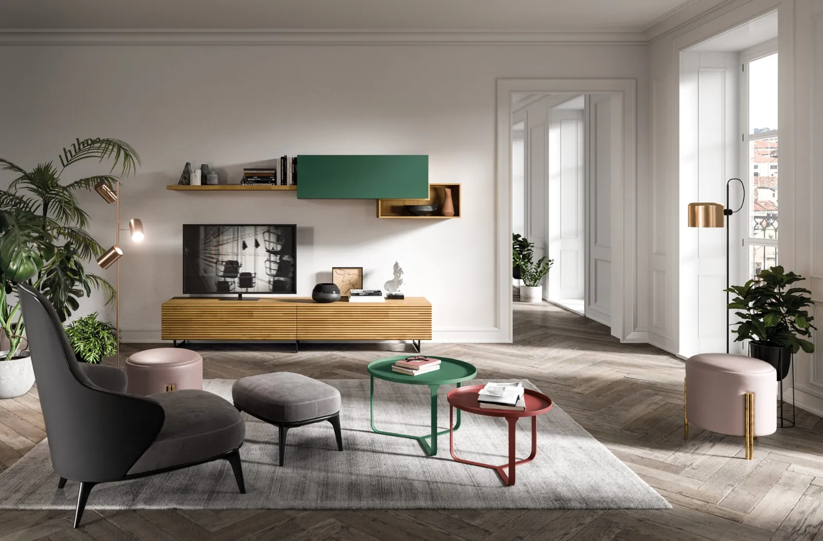Pareti attrezzate e mobili giorno FGF Mobili: clicca e scopri il modello Mixer 02 e potrai valorizzare stanze moderne di ogni genere.