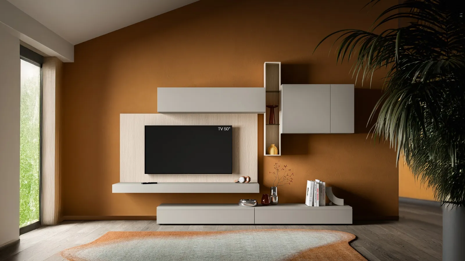 Vuoi arredare un living dinamico e operativo? Ti presentiamo la parete attrezzata Pratico PTG412 SantaLucia dalle forme decise moderne.