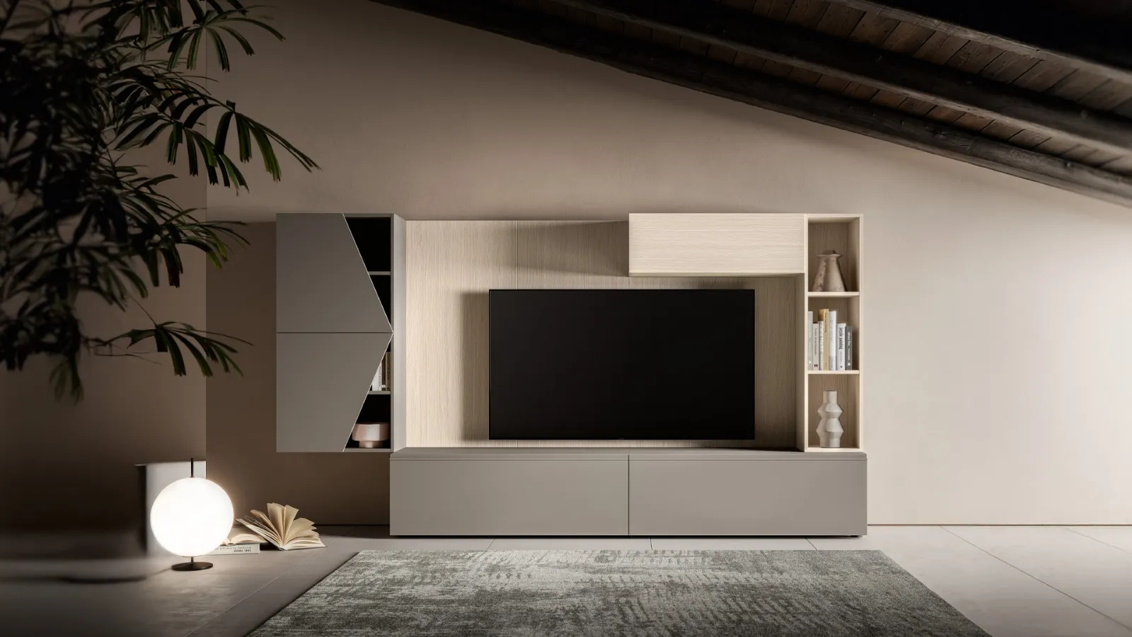 Lasciati ispirare da una ricca gamma di mobili per la zona giorno e troverai la parete attrezzata che fa per te. I mobili soggiorno in melaminico dalle linee moderne come il modello nella fotografia sono davvero poliedrici e capaci di progettare il soggiorno ottimizzando ogni angolo. La Parete Attrezzata Pratico PTG423 di SantaLucia nella fotografia è una delle più originali soluzioni d’arredo sul mercato: componibilità personalizzabile e le diverse opportunità di progettazione la rendono bella e di grande qualità. Dato che il soggiorno deve essere uno spazio funzionale e di grande valore estetico, sono molto utili alcuni mobili belli e funzionali come le Pareti Attrezzate.