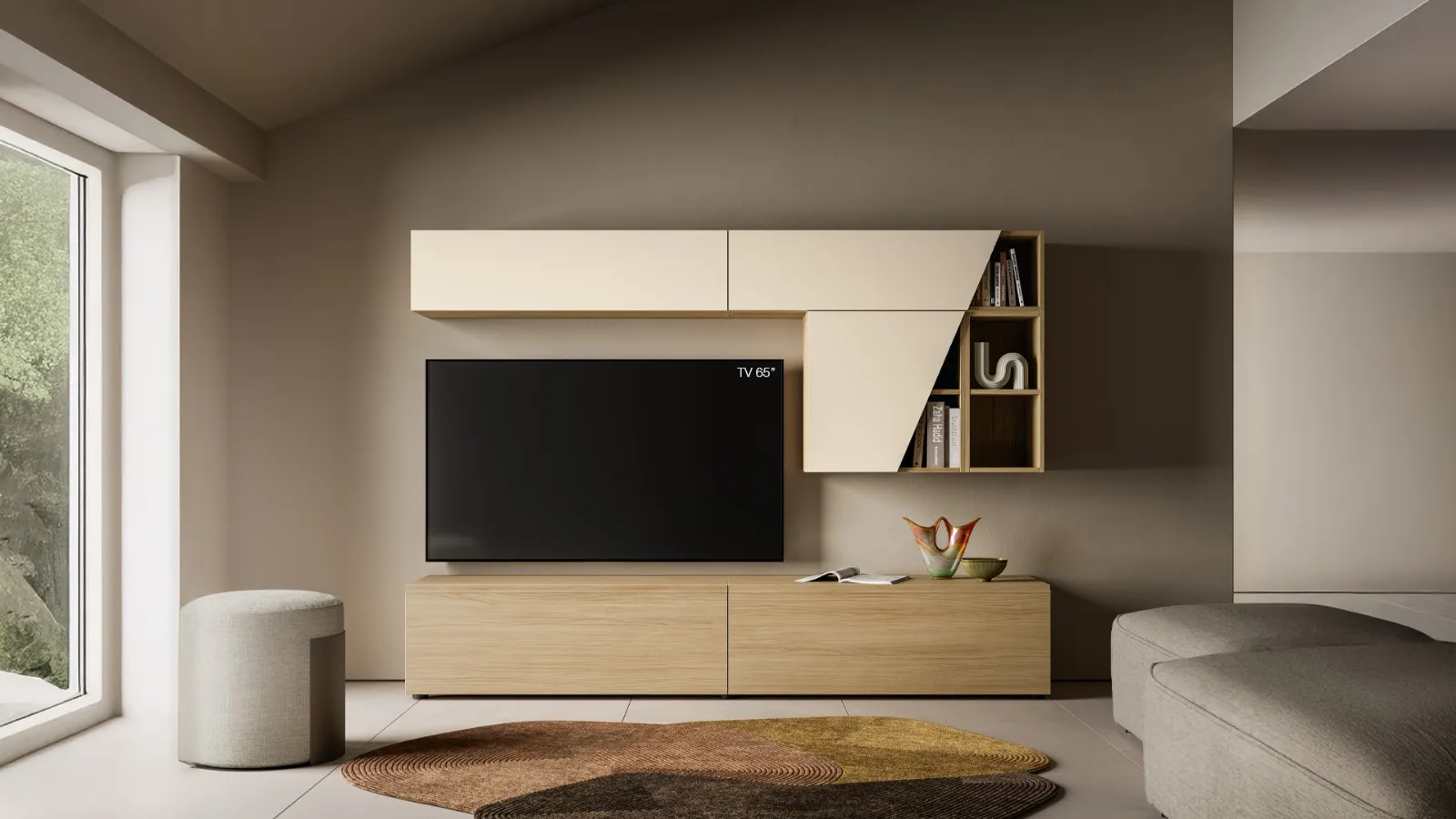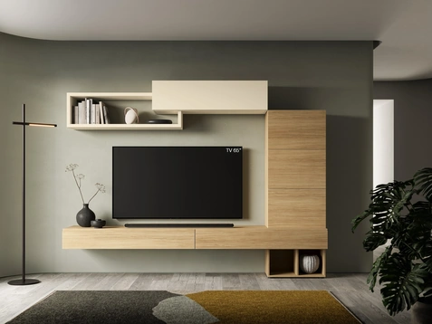 Vuoi progettare un soggiorno dinamico e operativo? Ti presentiamo la parete attrezzata Pratico PTG427 SantaLucia dalle linee decise moderne.