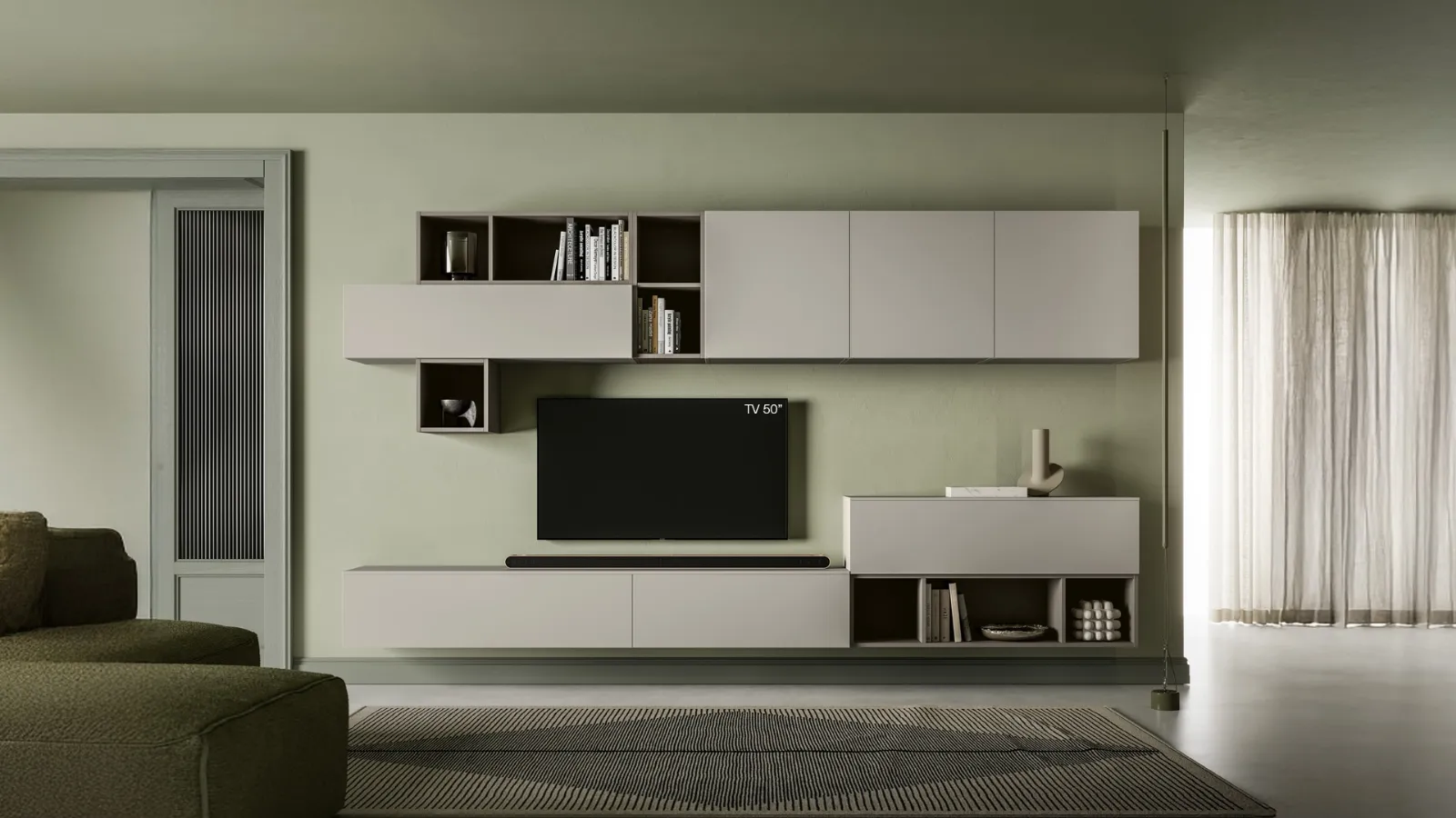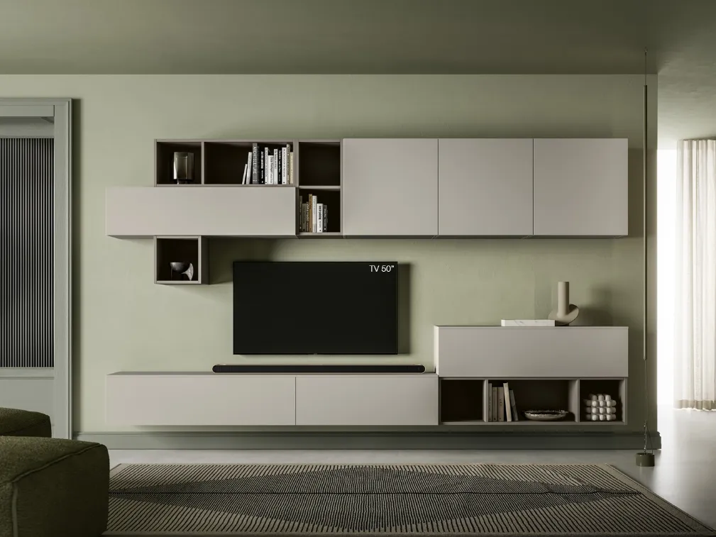 Clicca e scopri di più sulla parete attrezzata Pratico PTG438 del marchio SantaLucia: è la soluzione dalle linee moderne ideale per te.
