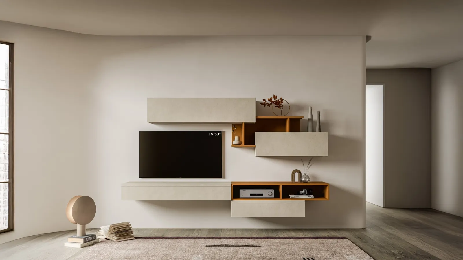 Pareti attrezzate e pensili SantaLucia: clicca e scopri il modello Pratico PTG447 e potrai valorizzare stanze moderne di ogni tipo.