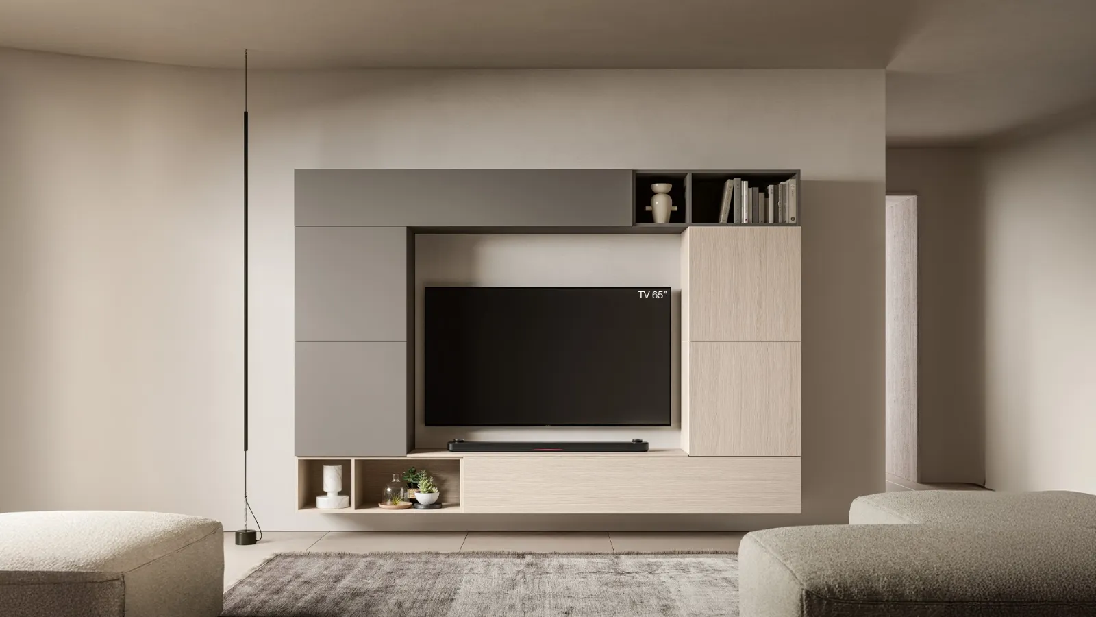 Se vuoi ultimare un soggiorno pratico e operativo dalle linee moderne, ecco a te la parete attrezzata Pratico PTG453 SantaLucia.