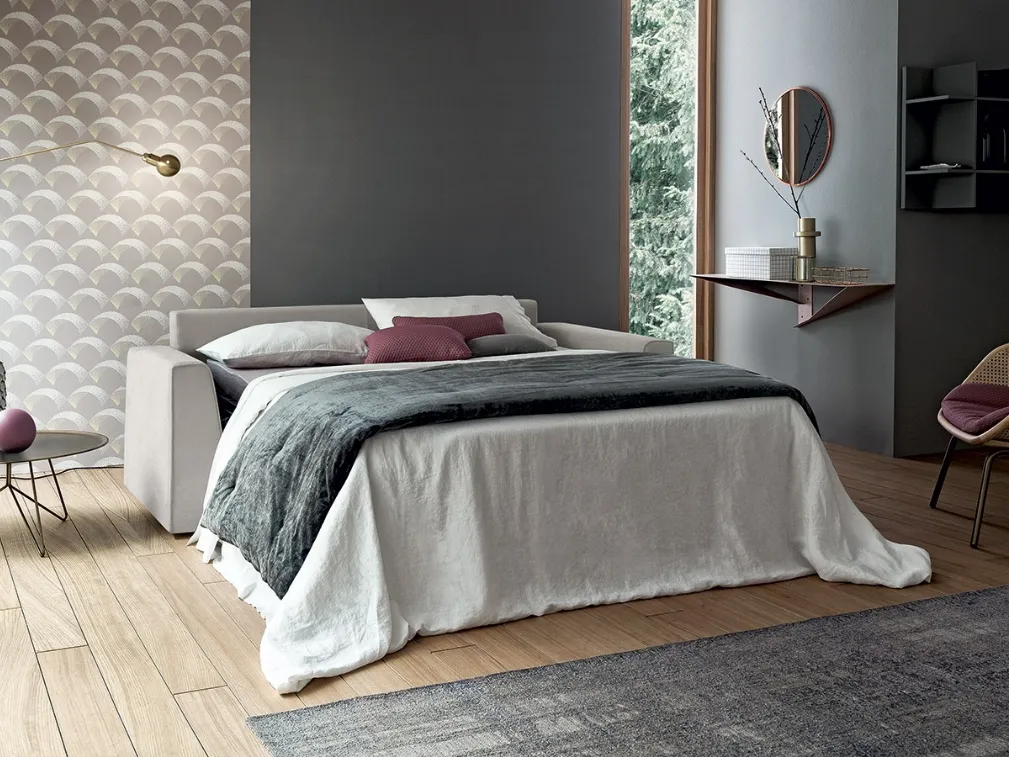 I nostri Salotti vengono progettati per essere abbinati a accessori di ogni genere, come tavolini, abat jour e piantane oppure in combinazione con ulteriori divani in tessuto. Divano Letto Jim di Felis: crea uno spazio accogliente e confortevole in spazi moderni dall'estetica raffinata. Se vuoi divani e poltrone con letto come il modello nell'immagine, contraddistinto dai volumi che invitano a trascorrere i tuoi momenti di riposo. La serie di divani della firma in questione presenta svariate possibilità originali per ammobiliare il soggiorno all'insegna di funzionalità, comfort e stile. Il catalogo Felis offre svariate possibilità per ammobiliare l'habitat all'insegna di funzionalità e contenuto estetico, mettendo al centro il tuo comfort.