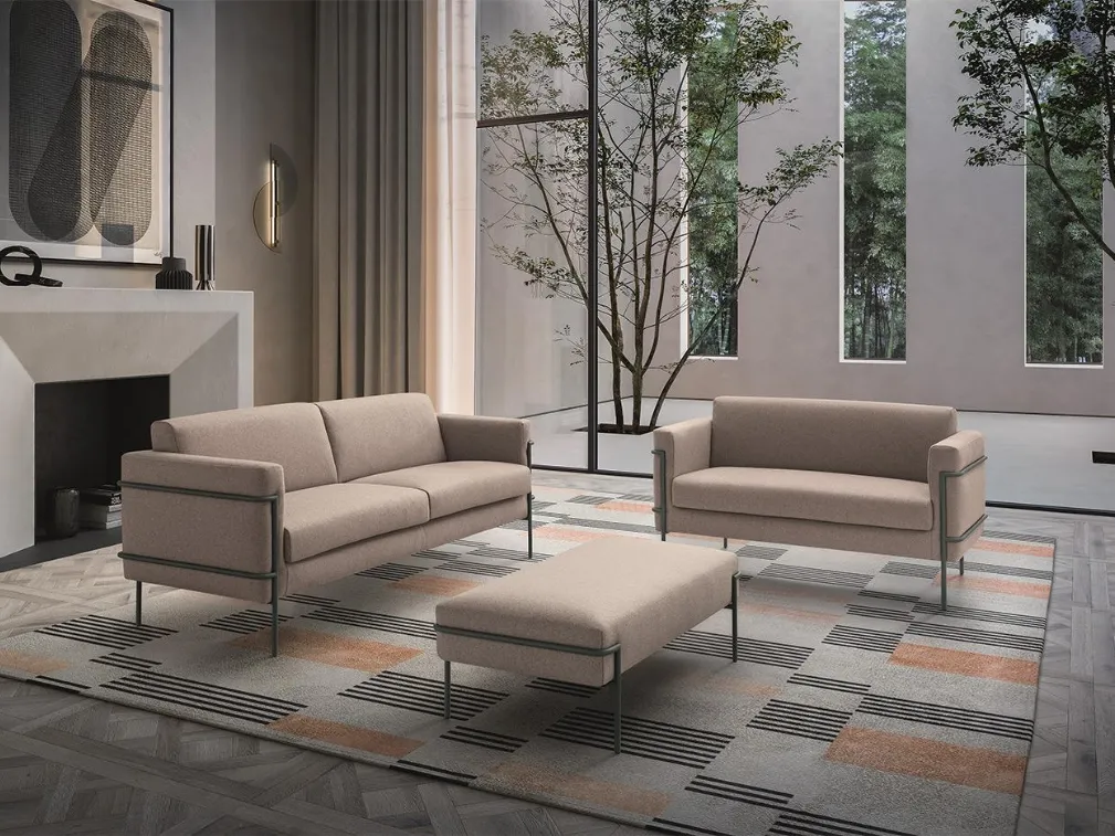 Se vuoi divani per salotti moderni, clicca e leggi di più sul modello Icon in tessuto del marchio Felis.