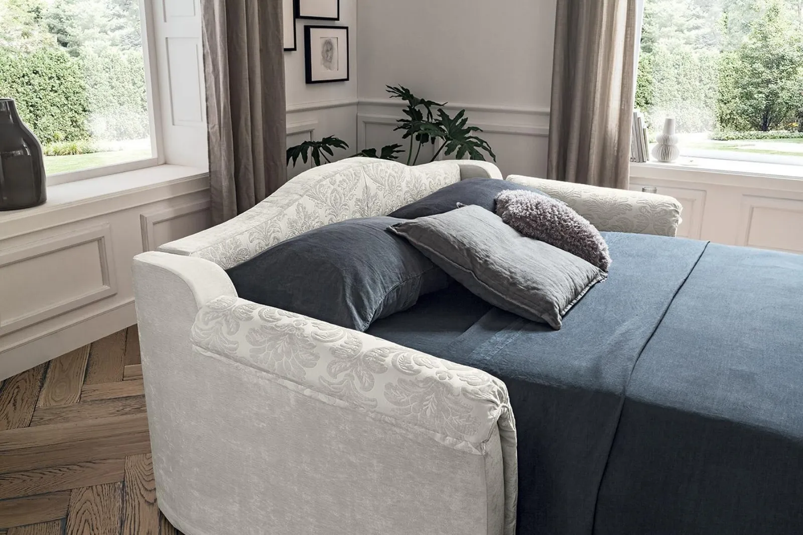 Questa proposta di grande valore estetico in tessuto, tra i molteplici modelli con letto classici, connota i tuoi interni unendo praticità e design. La zona giorno è il luogo di casa dove spesso inviterai amici e parenti per momenti in compagnia, quindi deve essere sempre accogliente, spazioso e anche bello a vedersi. In negozio proponiamo una vasta gamma di divani con letto, alcuni tra gli elementi ideali per arredare il tuo living con stile e praticità. Se stai cercando uno tra i modelli di Salotti classici con divani in tessuto, farci visita ti permetterà di scoprire le più belle proposte firmate Felis. I Salotti a firma Felis attrezzano in modo ottimale il soggiorno, spazio in assoluto dedicato alla conversazione con amici e parenti e al relax a fine giornata. Struttura solida, soffice imbottitura e doti di fascino caratterizzano il modello di Divano Letto Tango di Felis in tessuto visibile in foto.