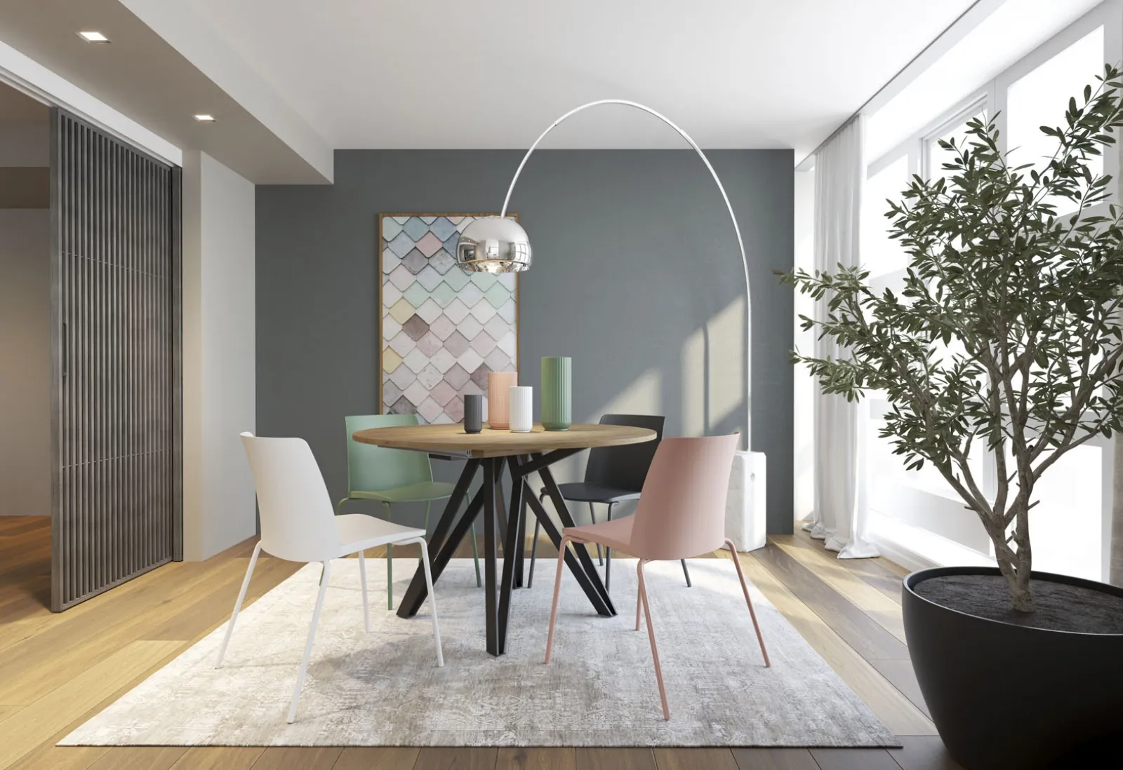 Con questa sedia Flexa Zamagna in plastica, una tra le nostre sedute fisse moderne, potrai valorizzare i tuoi interni.