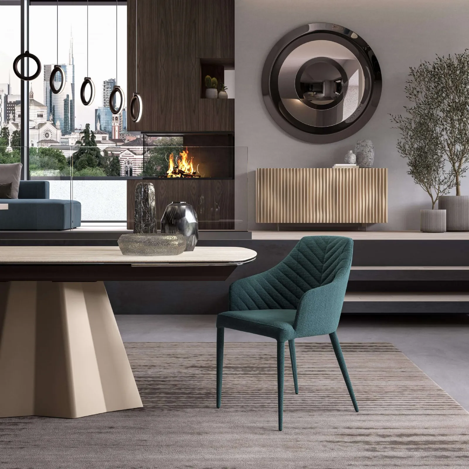 Se vuoi una sedia in tessuto per completare l’atmosfera di casa, scopri di più sul modello nella fotografia e trova un tavolo abbinato. Una vasta gamma di sedute fisse da pranzo ti attende nel nostro showroom: contattaci per informazioni e preventivi e ottimizza i tuoi spazi con la qualità che solo Ozzio sa assicurarti per mobili e oggetti accessori. Nel soggiorno o nella cucina, le Sedie sono arredamenti essenziali: definiscono il mood del locale e svolgono un ruolo imprescindibile. Il soggiorno e la cucina non sono davvero piacevoli e confortevoli se arredati con le Sedie sbagliate, ecco perché occorre che siano abbinate ai restanti pezzi d'arredo e alle dimensioni della stanza. Sedia Regiorgio di Ozzio: questo modello andrà a completare spazi di ogni tipo, in modo particolare atmosfere moderne.