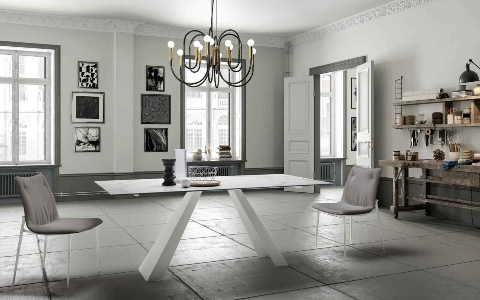 Le sedute, insieme ai tavoli, valorizzano lo stile degli ambienti: se desideri organizzare al meglio gli spazi impreziosendoli, allora le nostre soluzioni ti aspettano. In negozio potrai vedere uno dei modelli di Sedie fisse del brand, nonché potrai farti seguire dai nostri esperti progettisti durante l'acquisto. Nel living o in cucina le Sedie sono arredamenti immancabili, in quanto valorizzano lo stile dell'ambiente e svolgono una funzione imprescindibile. La giusta tipologia di sedia da pranzo per la tua casa, si definirà in base a stile dell'ambiente, misure e forma dello spazio e esigenze abitative peculiari. Sedia Ring di Zamagna in tessuto: ravviva l’ambiente di casa, mentre il tavolo abbinato renderà il locale di destinazione completamente vivibile. Il modello di charme nell'immagine è appartenente alla gamma praticamente infinita di soluzioni moderne da pranzo di Zamagna, disponibili in molteplici finiture.