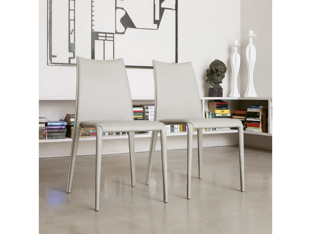 Con questa sedia S21 Kathy Ponti Terenghi in cuoio, una tra le nostre sedute fisse moderne, potrai completare i tuoi locali.
