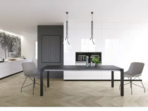 Tavolo Alis di Scavolini: realizzato in materiali di qualità è contraddistinto dalle linee decise del top e da un basamento elegante e raffinato. Ideali per dare vita a degli accostamenti unici con sedute e complementi moderni, i Tavoli allungabili della marca sono soluzioni tra le più originali in commercio, ideali per il living e la cucina. Se desideri un tavolo da cucina di alto contenuto estetico, contattaci e ricevi info e preventivi sul modello visibile in foto. Un modello come quello nell'immagine, in abbinamento alle giuste sedute, saprà impreziosire il mood delle stanze di casa dedicate per eccellenza all'ospitalità. Il noto e conosciuto brand Scavolini, specialista nella produzione di arredi HPL, ha scelto per la sua linea un'ampia gamma di finiture, forme e cromie.