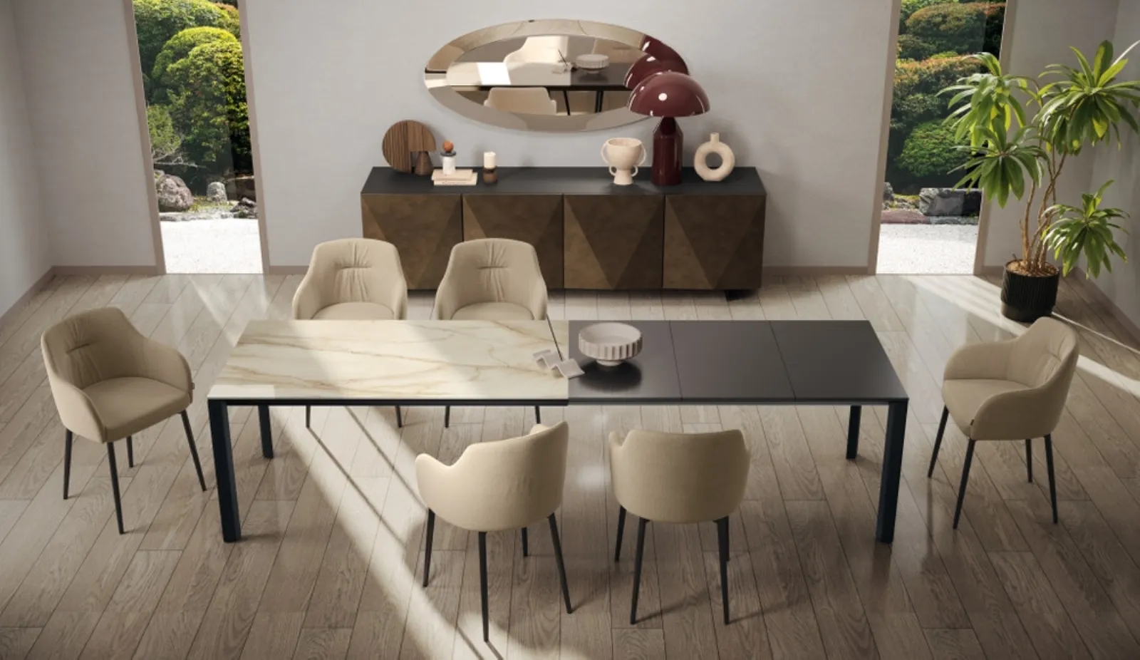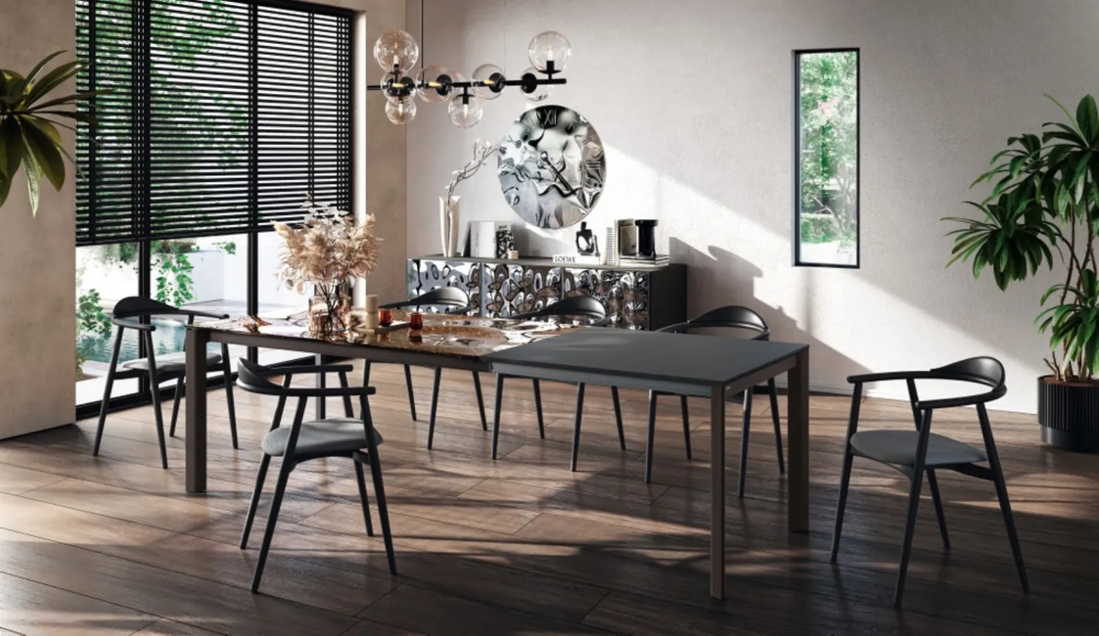Se cerchi tavoli allungabili moderni, ti presentiamo il modello da pranzo in gres Cosmic del brand Scavolini.