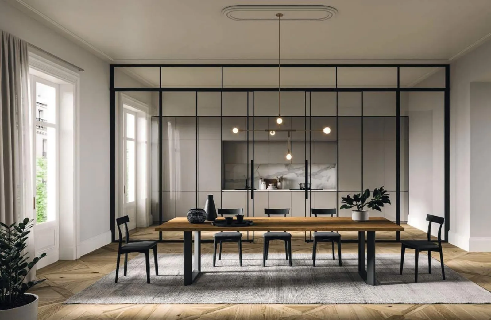 Se vuoi tavoli moderni da pranzo, scopri i modelli fissi di FGF Mobili: clicca e scopri il modello Bridge in legno.