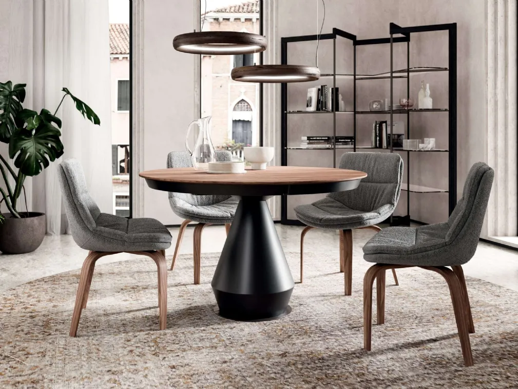 Il rinomato marchio Ozzio, leader nella produzione di arredi in legno, ha scelto per la sua linea una grande varietà di finiture, forme e tonalità. Se desideri un tavolo da pranzo di alto contenuto estetico, contattaci e ricevi informazioni e preventivi sul modello presente in foto. Un modello come quello nella fotografia, in abbinamento alle giuste sedute, saprà arricchire il look delle stanze domestiche dedicate in assoluto alla convivialità. Ideali per dare vita a degli abbinamenti unici con sedute e complementi moderni, i Tavoli allungabili dell'azienda sono soluzioni tra le più esclusive in commercio, ideali per il living e la cucina. Tavolo allungabile rotondo Lycos Legno di Ozzio: realizzato in materiali pregiati è caratterizzato dalle forme decise del top e da un basamento ricercato ed elegante.