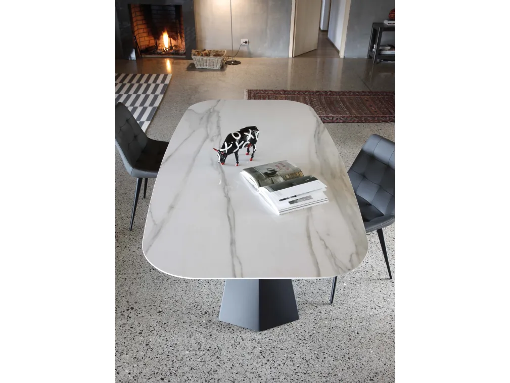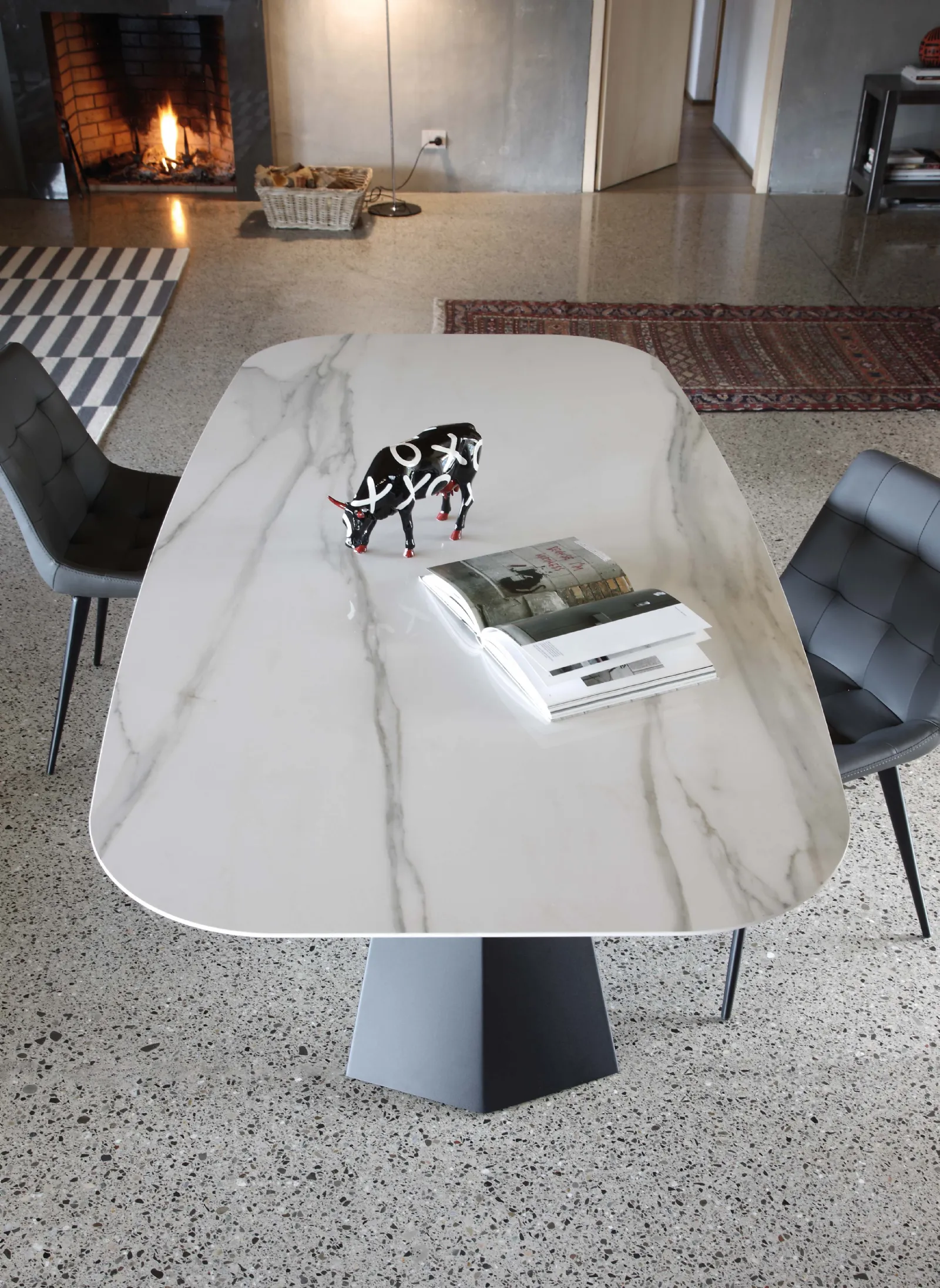 Se sei alla ricerca di un tavolo da pranzo di alto contenuto estetico, contattaci e ricevi informazioni e preventivi sul modello mostrato in foto. Tavolo Ragnar Ellittico di La Seggiola: realizzato in materiali pregiati è caratterizzato dalle linee decise del top e da un basamento ricercato ed elegante. Il rinomato brand La Seggiola, specialista nella produzione di arredi in gres, ha scelto per la sua collezione una vasta gamma di materiali, linee e tonalità. Ideali per dare vita a degli accostamenti unici con sedie e complementi design, i Tavoli fissi della firma sono soluzioni tra le più belle in commercio, ideali per il living e la cucina. Un modello come quello in foto, in abbinamento alle giuste sedie, saprà arricchire l'atmosfera delle stanze domestiche dedicate in assoluto alla convivialità.