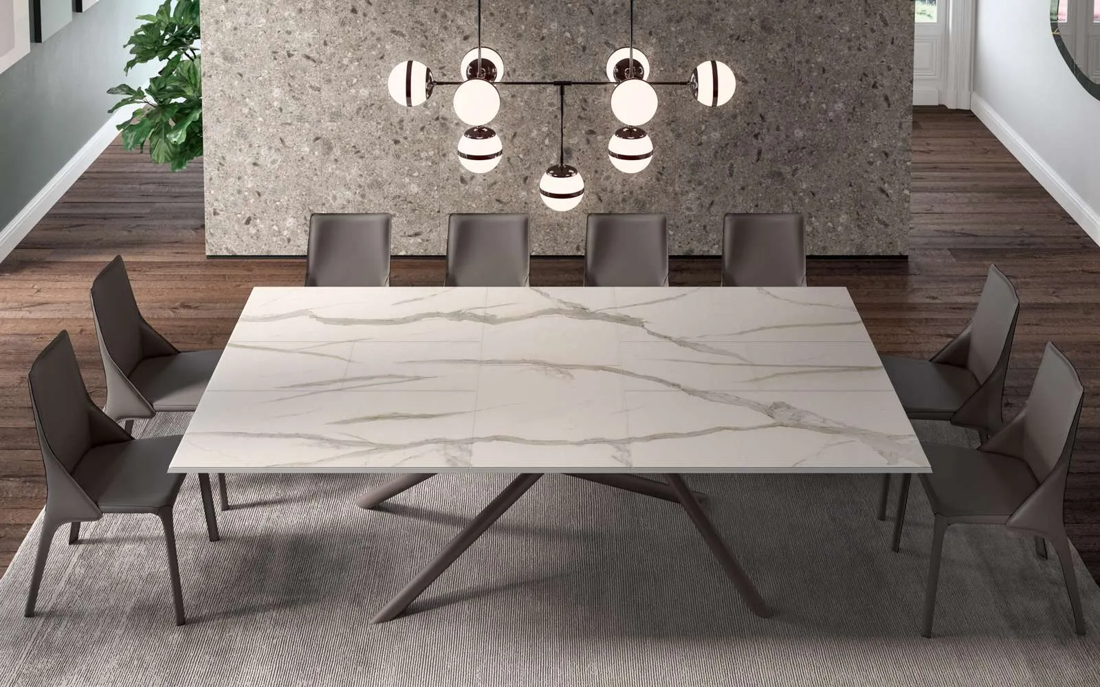 Tavolo allungabile Random Marble Glass di Ozzio: con questo modello potrai impreziosire spazi moderni assicurandoti grandi doti di componibilità e la massima personalizzazione dei tavoli allungabili. Contattaci per info e preventivi o puoi vedere nel nostro punto vendita le varie più belle proposte da pranzo in ceramica di Ozzio, esempio di tutta l'eccellenza assicurata dal marchio. La scelta dei Tavoli da pranzo È davvero importante se vuoi completare il proprio Arredamento Casa: vanno tenuti in considerazione gli spazi disponibili, gli accostamenti di colore e le finiture. Da noi troverai un ricco catalogo di mobili e oggetti accessori in ceramica dei migliori produttori, ideali per completare i tuoi spazi.