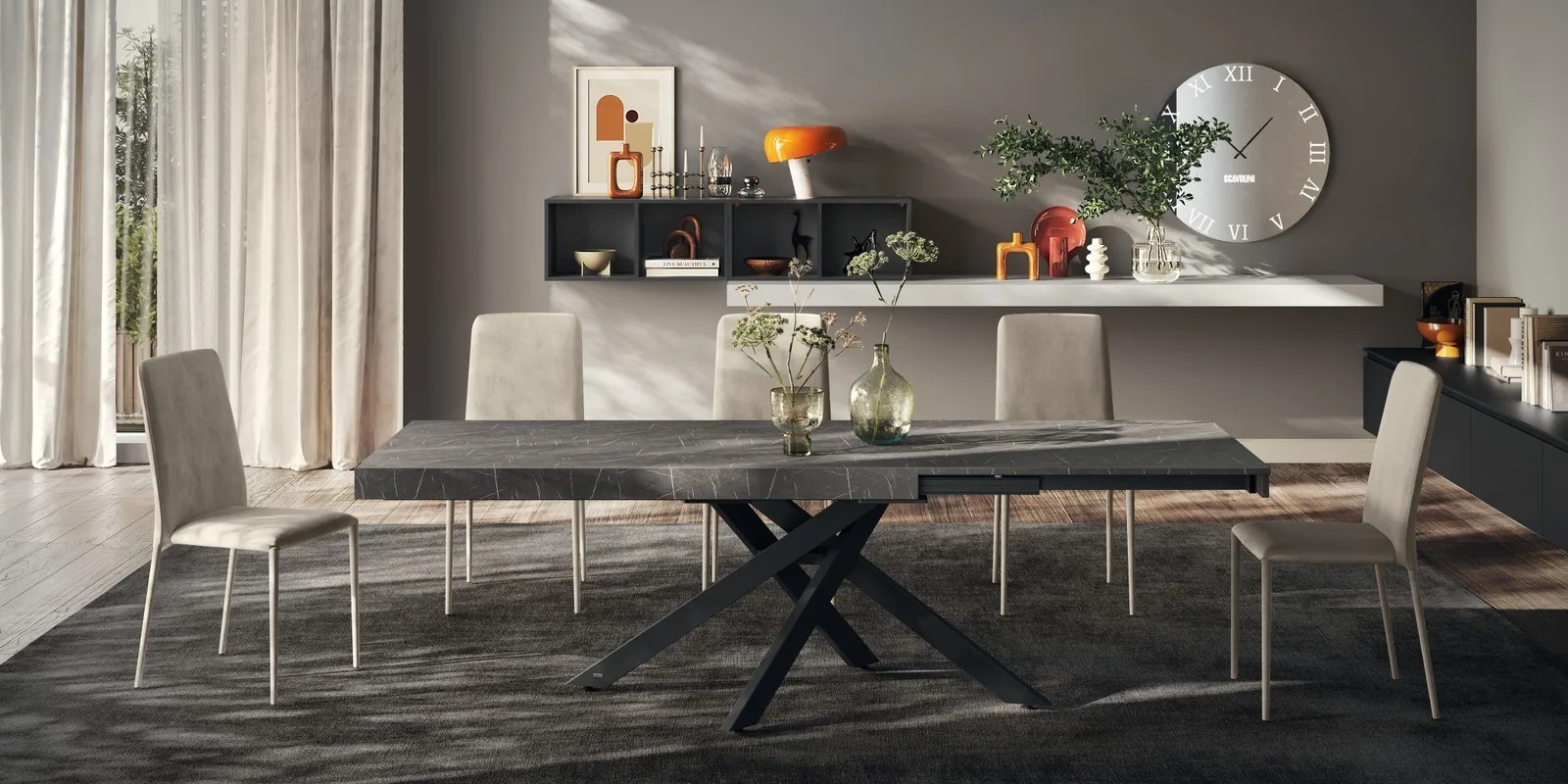 La scelta dei Tavoli da pranzo È veramente fondamentale se desideri ultimare il proprio Arredamento Casa: sono da verificare gli spazi disponibili, gli accostamenti di colore e le finiture. Contattaci per info e preventivi o puoi vedere in negozio le altre più belle proposte da pranzo in HPL di Scavolini, esempio di tutta la qualità assicurata dal marchio. In negozio troverai una ricca gamma di mobili e complementi in HPL dei migliori brand, ideali per ultimare i tuoi interni. Tavolo Manhattan di Scavolini: con questo modello potrai valorizzare spazi moderni garantendoti massima componibilità e la massima personalizzazione dei tavoli fissi.