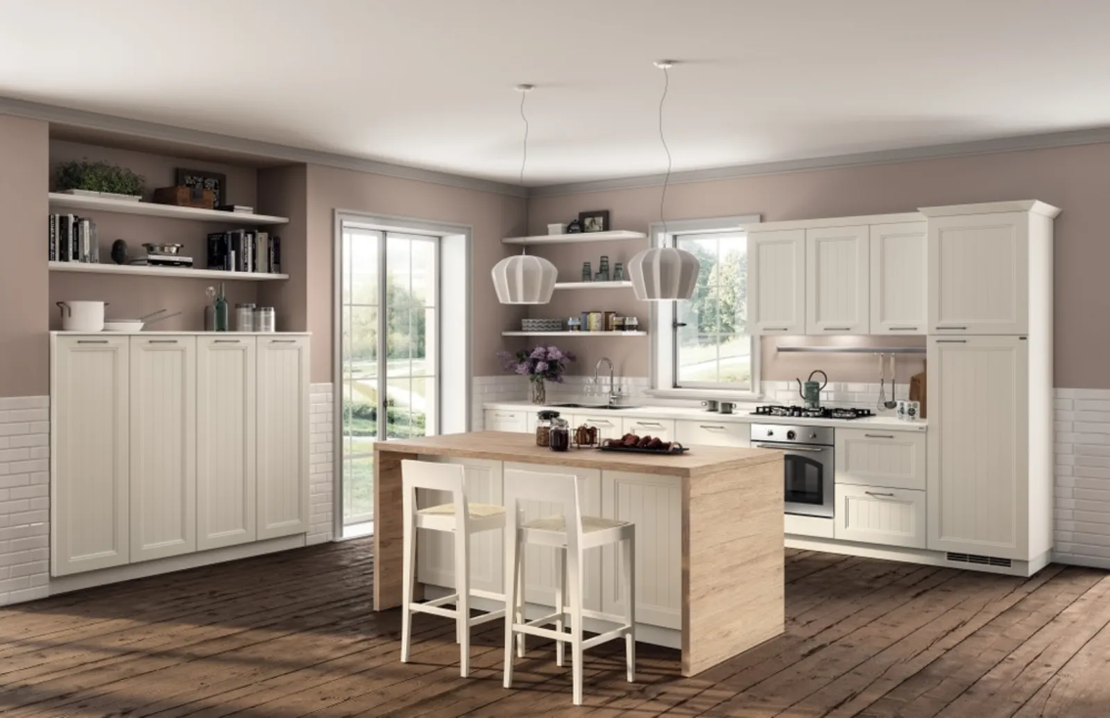 Tempo di ridefinire la zona cucina? Scegli il modello Colony 03 Scavolini tra le nostre Cucine Classiche con isola.