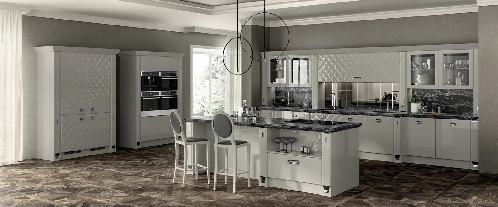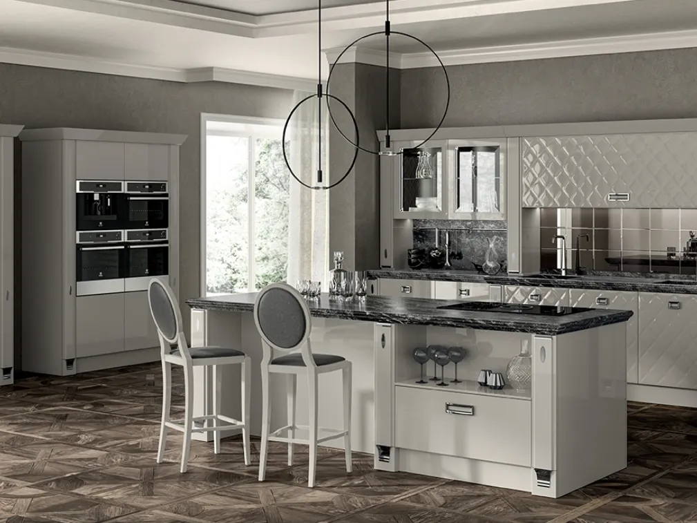 Cucine con isola Scavolini: entra e scopri un mondo di design e contenuto estetico! La cucina tradizionale Exclusiva con anta Glamour ti sta aspettando.