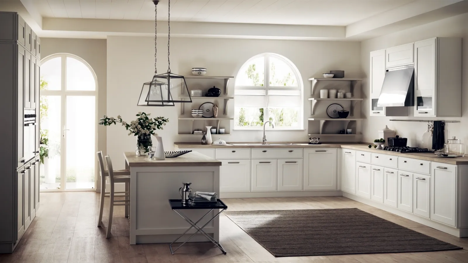Tempo di progettare la cucina? Prediligi il modello Favilla 05 Bianco Prestige Scavolini tra le nostre Cucine Classiche ad angolo.
